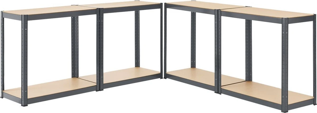 Of het nu in de kelder, garage, werkplaats of berging is – met de praktische 2-plankenset Easy (grijs) breng je orde in je leven. De set bestaat uit twee stevige planken van 160 x 80 x 40 cm van gegalvaniseerd metaal. Beide kelderplanken zijn elk voorzien van 4 stabiele planken. Ideaal voor het opbergen van gereedschap, tuingereedschap, benodigdheden, drinken en andere spullen. Het ingenieuze insteeksysteem maakt een snelle montage zonder boren of schroeven mogelijk. De kunststof voetjes beschermen je vloer tegen lelijke krassen.