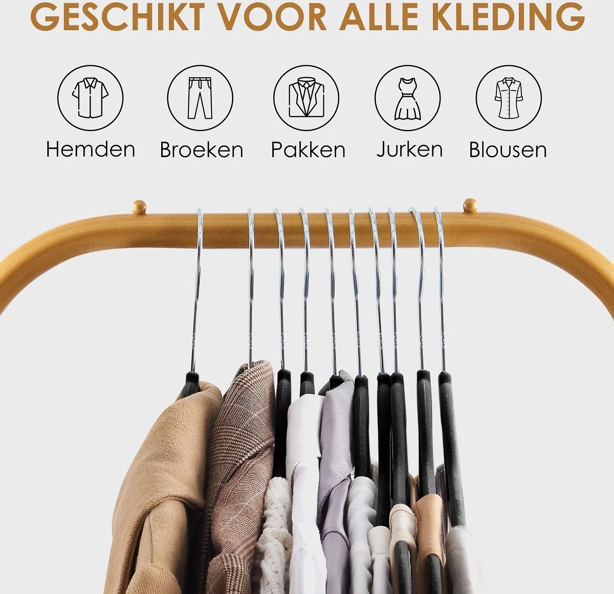 20 Anti Slip Kledinghangers – Draaibare Metalen Haak – Plooibaar – Zwart