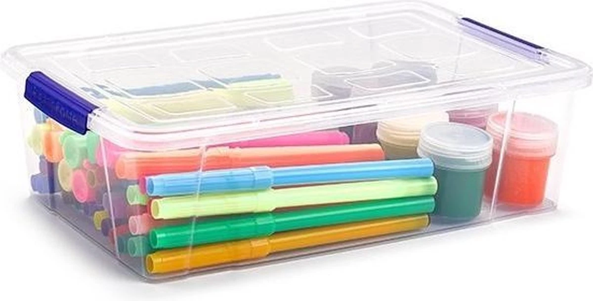 3x Opslagbakjes/organizers met deksel 2 liter 25 cm. Transparante opbergbakjes met deksel welke is voorzien van sluitclips. Handig voor het opbergen van kleine spulletjes. Inhoud: ca. 2 liter. Formaat: 16,5 x 25,5 x 7,5 cm. Materiaal: kunststof (plastic). Aantal stuks: 3x.
