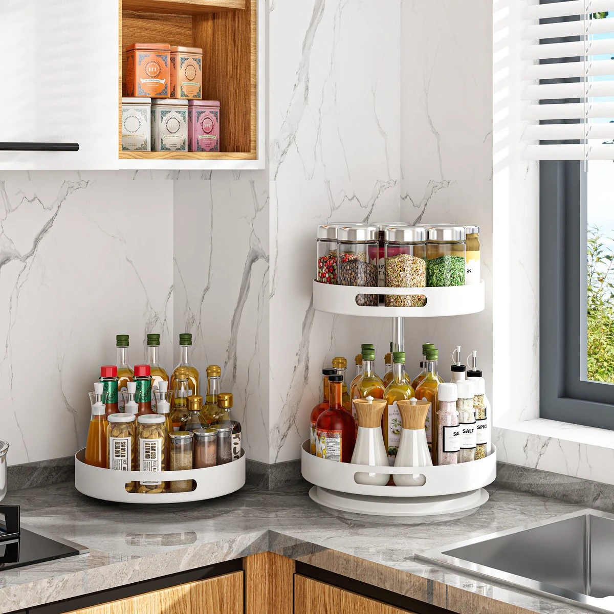 Geef de smaakmakers van je keuken kleur met deze volledig draaibare AlShiha organizer. Verstop je zwarte peper, nootmuskaat en olijfolie niet langer in je voorraadkast. In een handomdraai pak je ze tijdens het koken zo van dit handige kruidenrek. Gezellig en toch geordend. Je aanrecht leeft ervan op.