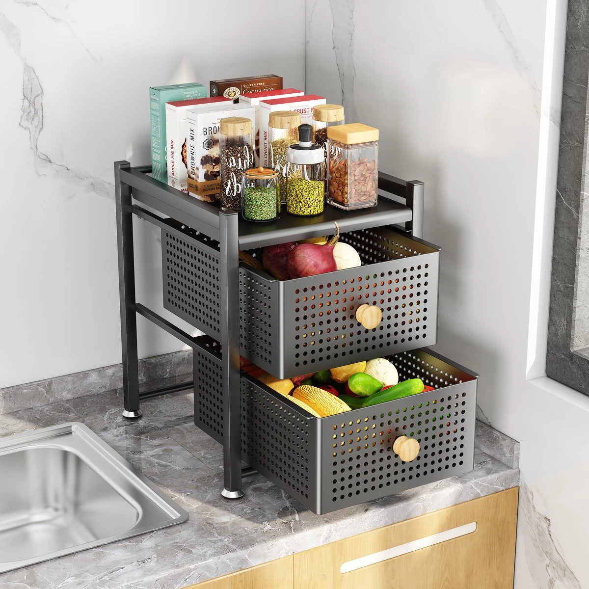 Het rek is bij ons verkrijgbaar in een variant met één of twee laden. Afhankelijk van uw behoefte. Bovenop het rek kunt u potjes of een pan kwijt. De laden beschikken over een speciaal mechanisme dat voorkomt dat de lade bij het uittrekken afbreekt. U pakt uw levensmiddelen daardoor altijd veilig uit de la.