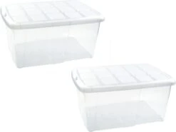1x Stuks Opslagbakken/organizers Met Deksel 35 Liter 42 X 36 X 35 Cm Transparant – Opbergbakken