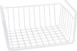 2x Stuks Opberg/opruim Hangmandje/plankmandje Wit 30 Cm Van Ijzer – Opbergmanden – Kastmandjes