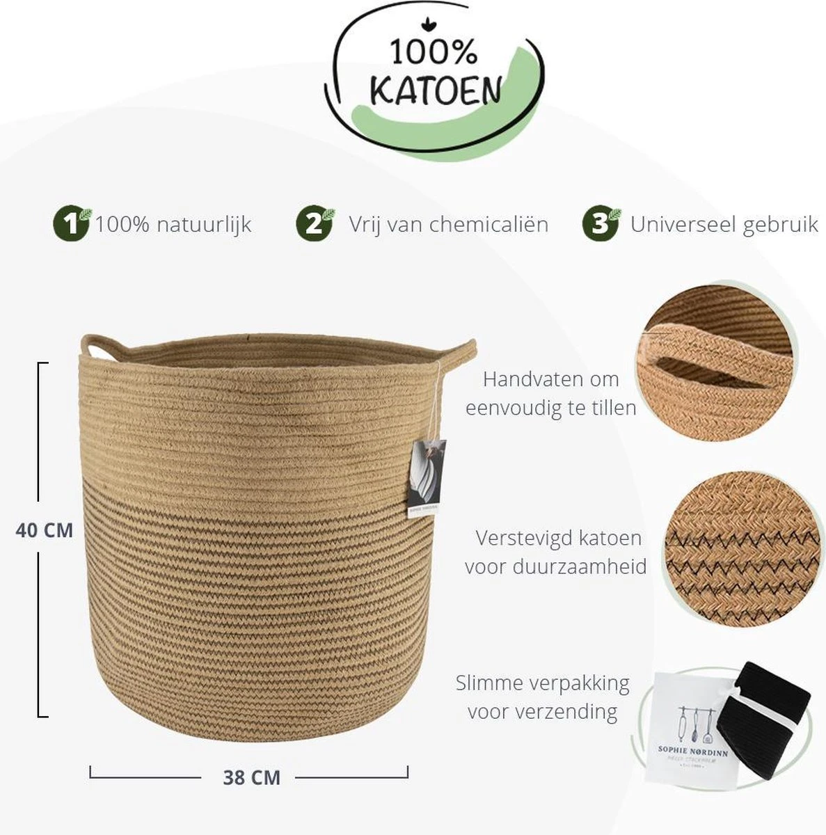 Je kan ze gebruiken als opbergmand voor tijdschriften, rondslingerend speelgoed of opbergbox voor bijvoorbeeld dekens. Ook is deze mand geschikt als wasmand of waszak in de badkamer voor al je schone of juist vieze was. Last but not least zien we onze mand ook vaak terug als creatieve bloempot, de ideale Plantenmand!