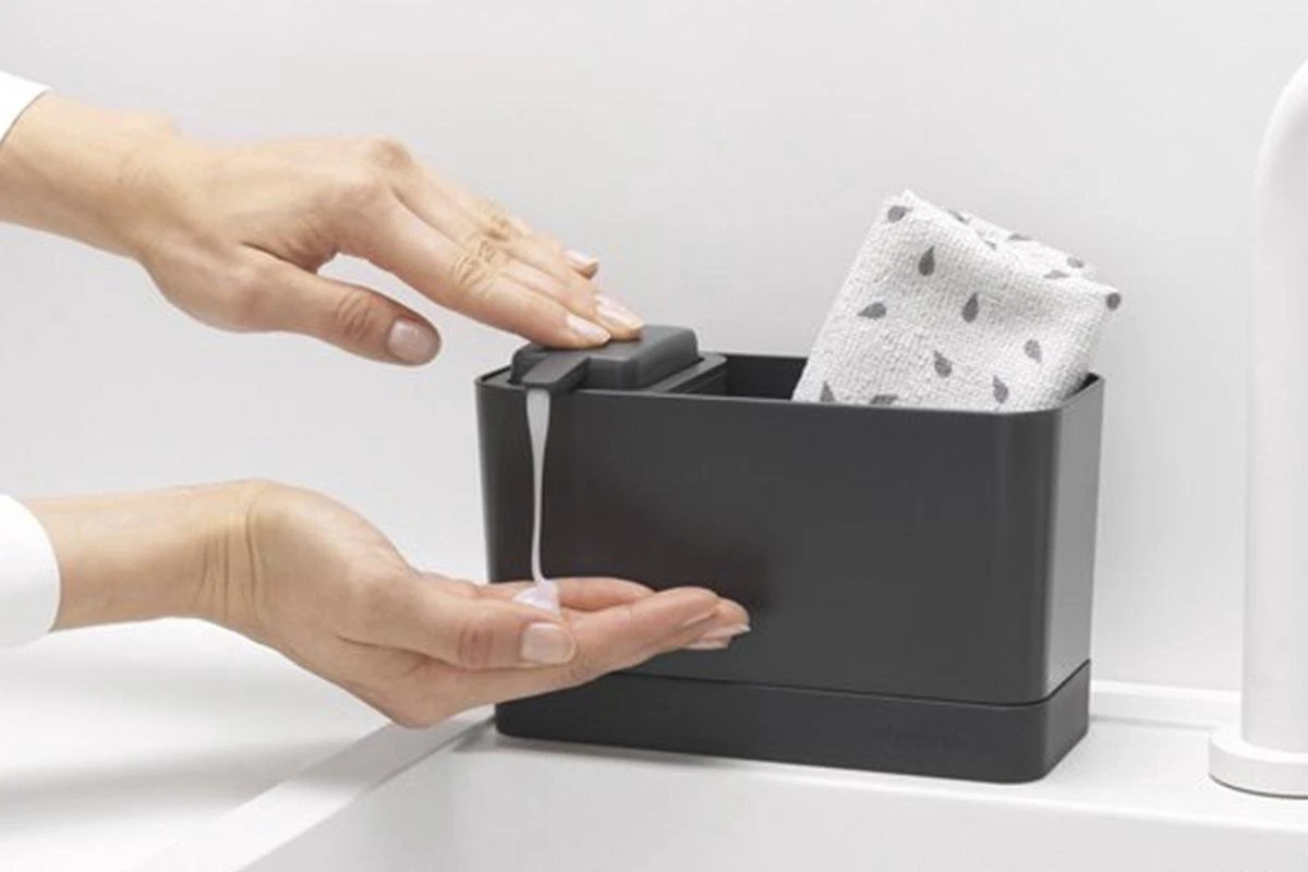 Afgeknapt op de afwas? Brabantia SinkSide Aanrecht organizer – Set 2-delig – Dark Grey geeft aandacht aan je aanrecht. De set bestaat uit een aanrechtbakje en een zeeppomp. Je hebt geen last van stilstaand water door de open onderkant en het antislip uitlekbakje.