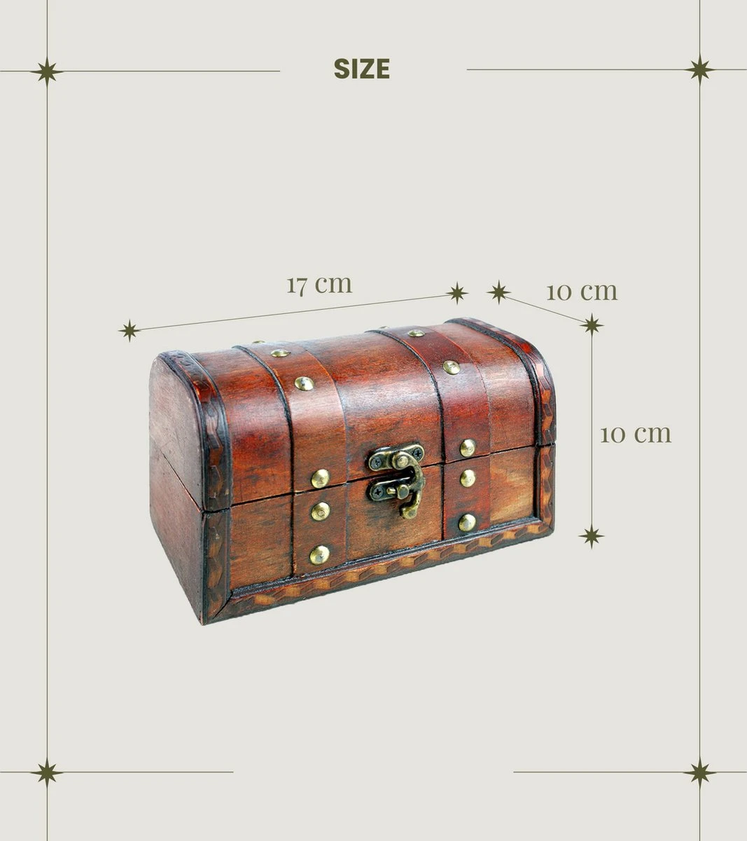 Een goede keuze voor elke gelegenheid – de BRYNNBERG schatkist in antiek design Als visuele blikvanger in uw eigen vier muren of als ongewoon cadeau voor jong en oud; de houten kist overtuigt door prachtige decoraties en ornamenten zoals metalen beslag en leren riemen. Als juwelendoos of tijdschriftenmagazijn biedt de BRYNNBERG schatkist altijd een mooie gelegenheid om al uw spullen snel en veilig op te bergen. De houten kist is ook zeer geschikt als spaarpot of mooie schatkist. Deze veelzijdige doos tovert een glimlach op het gezicht van elke eigenaars en is een prachtig accessoire voor woonkamers of een geweldig speeltje voor de kinderkamer. Omdat het niet veel weegt, kunnen kinderen de kist ook goed dragen. Of het nu gaat om een speurtocht of een themafeest – er zijn eindeloze mogelijkheden voor creatieve ideeën om de schatkist te gebruiken. Om ervoor te zorgen dat voor elke gelegenheid de juiste kist beschikbaar is, zijn BRYNNBERG-kisten verkrijgbaar in verschillende uitvoeringen en maten. Bovendien is de schatkist altijd gemakkelijk te hanteren dankzij de draaibare sluiting. De voordelen van de BRYNNBERG schatkist in één oogopslag: veelzijdig, aantrekkelijk, antiek design, ideaal als geschenk, handgemaakt. Verschillende versies beschikbaar.