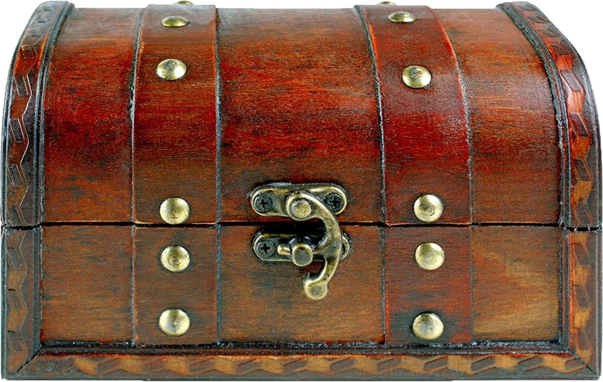 Brynnberg Kleine Schatkist 17x10x10cm Houten Schatkist Vintage Look Antiek Ontwerp Piraten Schattenjacht Hout Rood Bruin Zwart – Schatkist Kinderverjaardag – Houten Kist Klein – Houten Kist