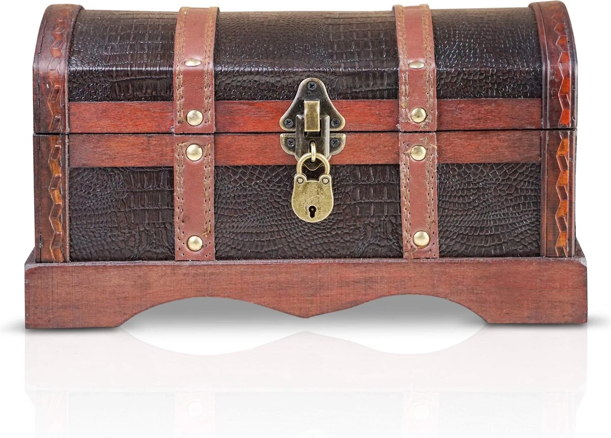 Brynnberg Schatkist “Croco 30x17x16cm” – Grote Schatkist, Zwart Imitatie Krokodillenleer Patroon Hout Met Deksel, Slot En Sleutel, Piratenkist Afsluitbaar, Opbergkist