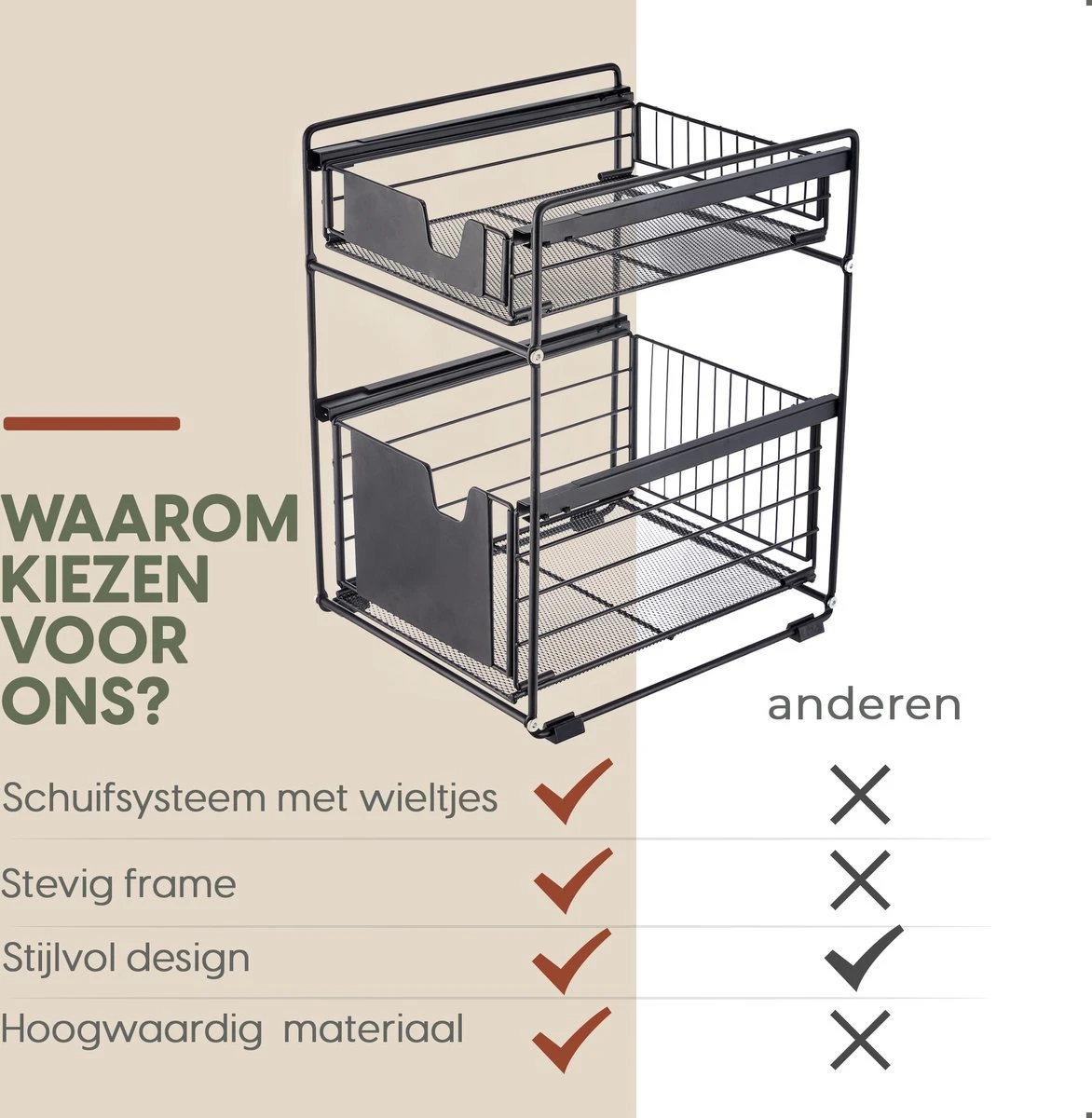 Deze gootsteenkast organizer is de ideale oplossing voor dit probleem. Ervaar een luxe uitstraling in jouw keuken, zonder lastige montage!