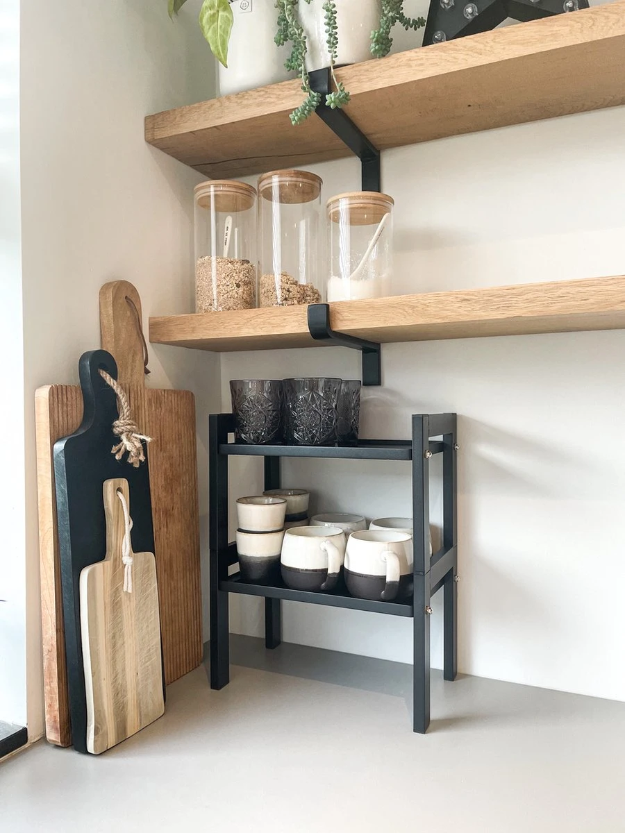 De organizer is gemaakt van hoogwaardig ijzer en daarmee een robuuste toevoeging binnen in jouw huis. De organizer is sterk, duurzaam en stabiel en hierdoor kunnen er voorwerpen op de organizer geplaatst worden met een zwaarder gewicht. De organizer kent een kwalitatieve zwarte poeder coating wat zorgt voor een anti-corrosieve werking. Geniet jarenlang van de organizer!