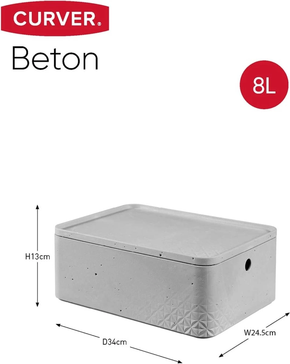 Curver’s Beton opbergboxen geven jouw ruimte een unieke hoogwaardige en eigentijdse look & feel. Alle boxen zijn multifunctioneel en passen perfect in elke woonkamer, badkamer of slaapkamer. Het apart verkrijgbare deksel beschermt de inhoud tegen stof en vuil. Elke box heeft handgrepen en is stapelbaar met of zonder deksel.