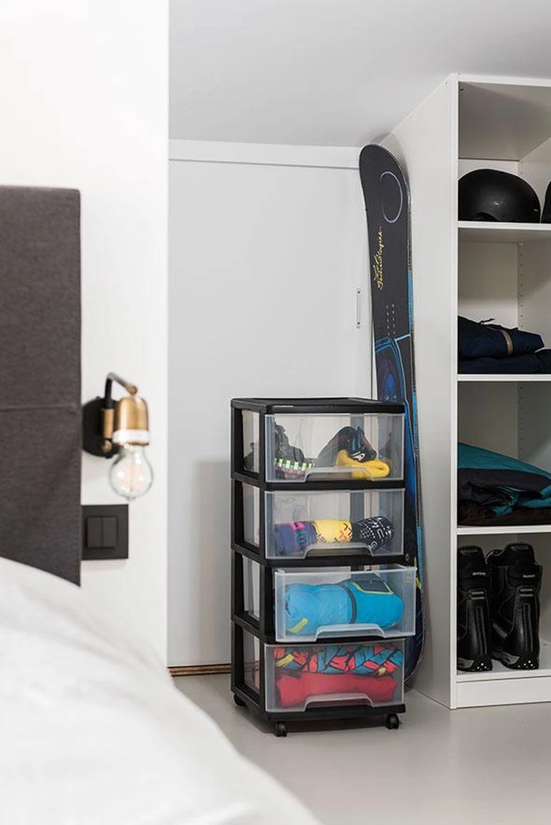 Het Curver Essentials ladesysteem is een solide opberger op wielen. De aanzienlijke lades van 20L zijn onovertroffen in gebruiksgemak en functionaliteit. De toevoeging van wieltjes zorgen ervoor dat het product eenvoudig is te verplaatsen.