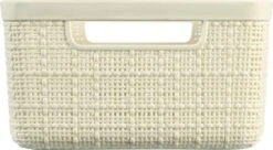 De Curver Style opbergmandjes zijn opbergproducten die gezien mogen worden. De mandjes zijn voorzien van een vlechtstructuur die lijkt op natuurlijke materialen. Ze hebben de uitstraling van riet maar de voordelen van kunststof: Eenvoudig te reinigen, goed te stapelen, voorzien van handgrepen en bestand tegen vocht. Door het deksel goed af te sluiten. Ideaal voor gebruik in de badkamer, woonkamer, kinderkamer of op kantoor. Daarnaast is de opbergdoos gemaakt van minstens 70% gerecycled materiaal.