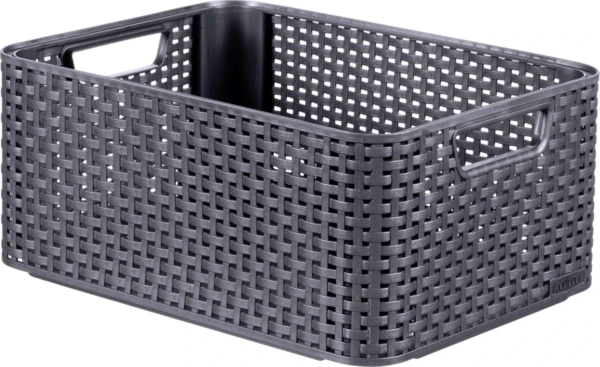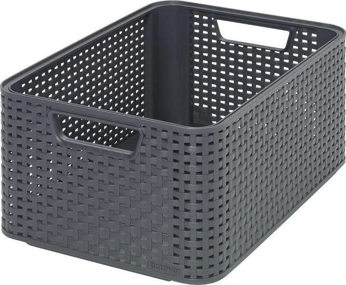 De Curver Style opbergmandjes zijn opbergproducten die gezien mogen worden. De mandjes zijn voorzien van een vlechtstructuur die lijkt op natuurlijke materialen. Ze hebben de uitstraling van riet maar de voordelen van kunststof: Eenvoudig te reinigen, goed te stapelen, voorzien van handgrepen en bestand tegen vocht. Ideaal voor gebruik in de badkamer, woonkamer, kinderkamer of op kantoor. Daarnaast is de opbergdoos gemaakt van minstens 70% gerecycled materiaal.
