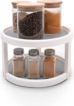 Dit plateau is de nieuwe musthave voor bij jou thuis. Het multifunctionele draaiplateau kan zowel voor kruiden, hapjes en badkamerproducten gebruikt worden. Doormiddel van het dubbele draaiplateau kun je twee keer zoveel spullen kwijt. Vanwege het handige formaat kan je makkelijk de draaischijf in je keuken op het aanrecht kwijt. Wilt u dit liever uit het zicht past het plateau ook bijna in elk kasje of lade. Ook in je badkamer kan dit niet meer ontbreken je kan je make up, sieraden of natuurlijk je dagelijkse producten gemakkelijk organizen.