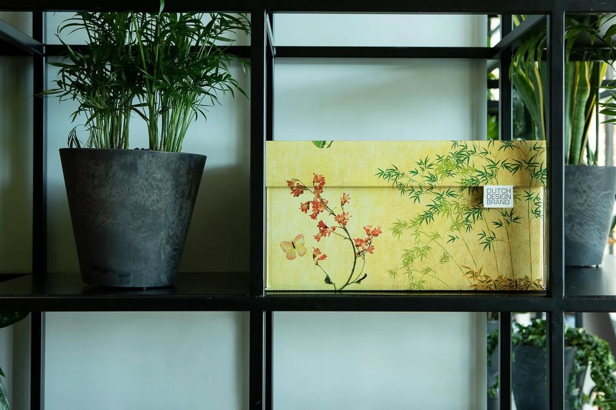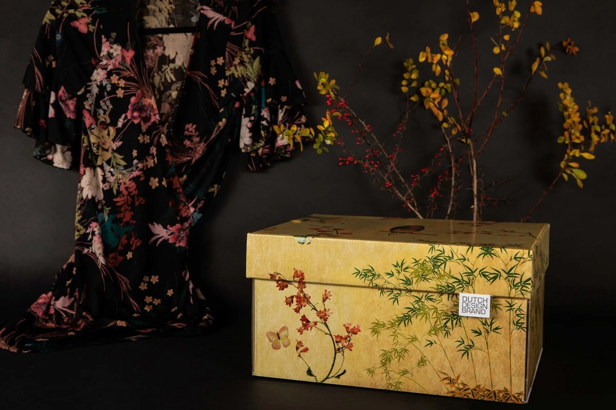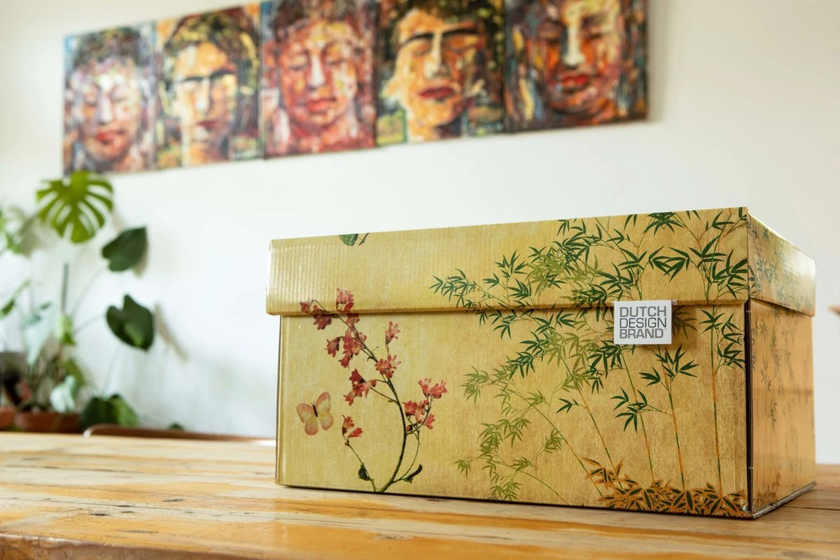 De Dutch Design Storage Boxen zijn er in 20 verschillende prints waardoor er altijd een juiste match te vinden is. Zo zijn er klassieke barok prints, kleurrijke botanische bedrukkingen en stijlvolle vintage designs. Naast praktisch zijn ze ook nog eens een lust voor het oog en ze passen perfect in een standaard kast of onder het bed. Vanwege de trendy look is het niet nodig de dozen op te bergen uit het zicht. De print op de Japanese Blossom Storage Box doet je verlangen naar een tropisch paradijs.