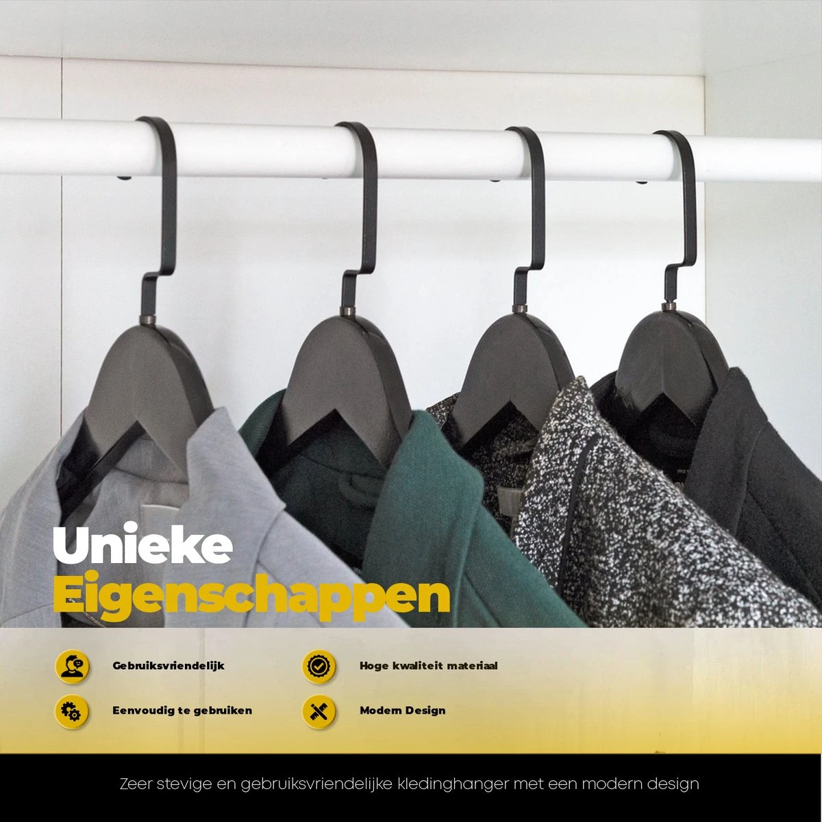 Deze luxe kledinghangers van Eleganca zijn geschikt voor het ophangen van zware kleding, zijn ruimtebesparend en uitsluitend gemaakt van stevige en betrouwbare materialen.