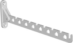 Staal, wit gemoffeld. Inklapbaar. Voor schroefbevestiging. Compleet met schroeven en pluggen.