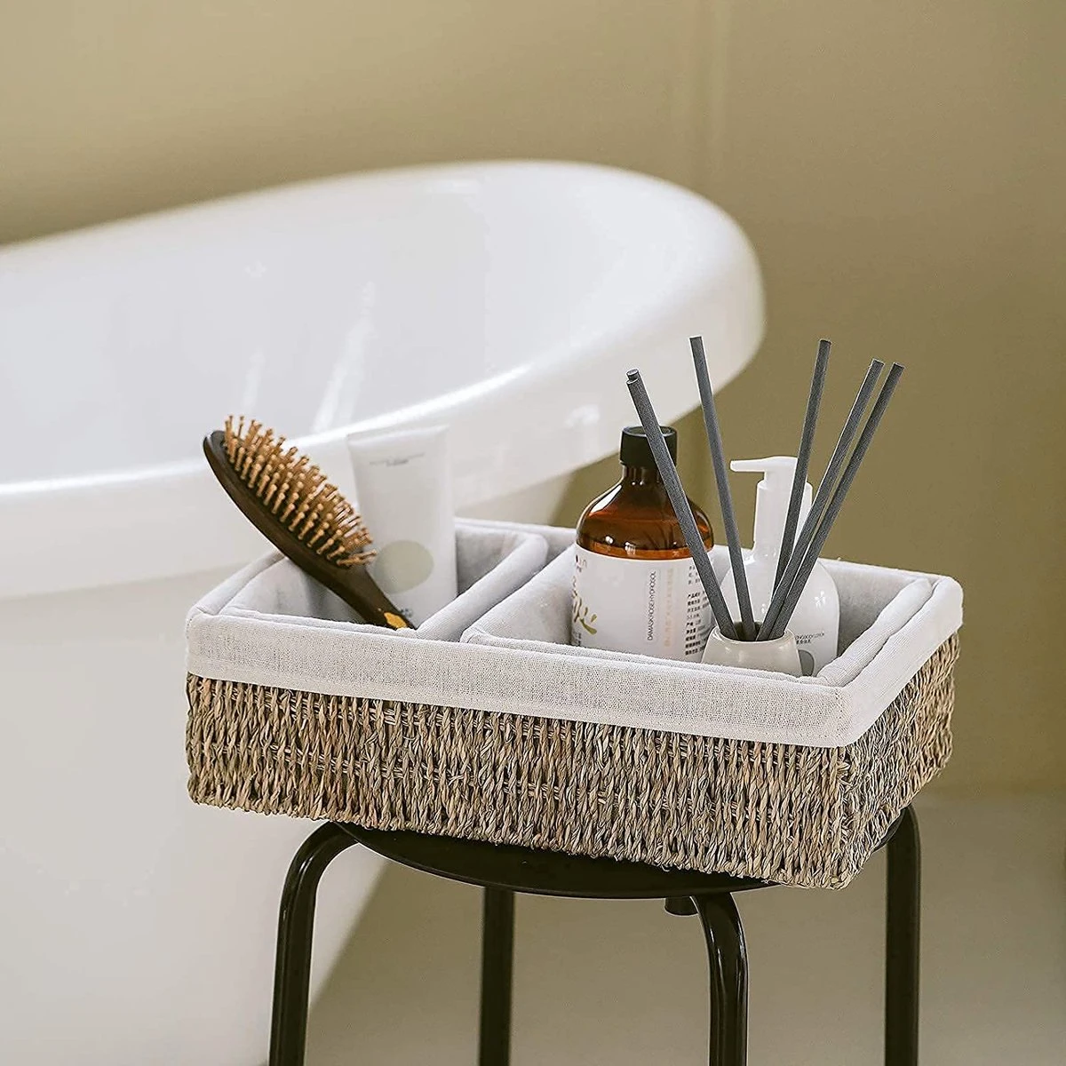 Deze 3 opbergmanden gemaakt van riet bieden de ideale oplossing voor het opbergen van kleinere items in huis. De kleine opbergmanden zijn geschikt voor bijvoorbeeld; doucheproducten, sleutels, bestek, accessoires en nog veel meer. De grote opbergmand is geschikt voor bijvoorbeekd; boeken, toiletspulletjes, handdoeken en nog veel meer. Het zijn stijlvolle manden, een aanwinst voor uw interieur. Plaats de manden in de keuken, op kantoor of in uw badkamer.