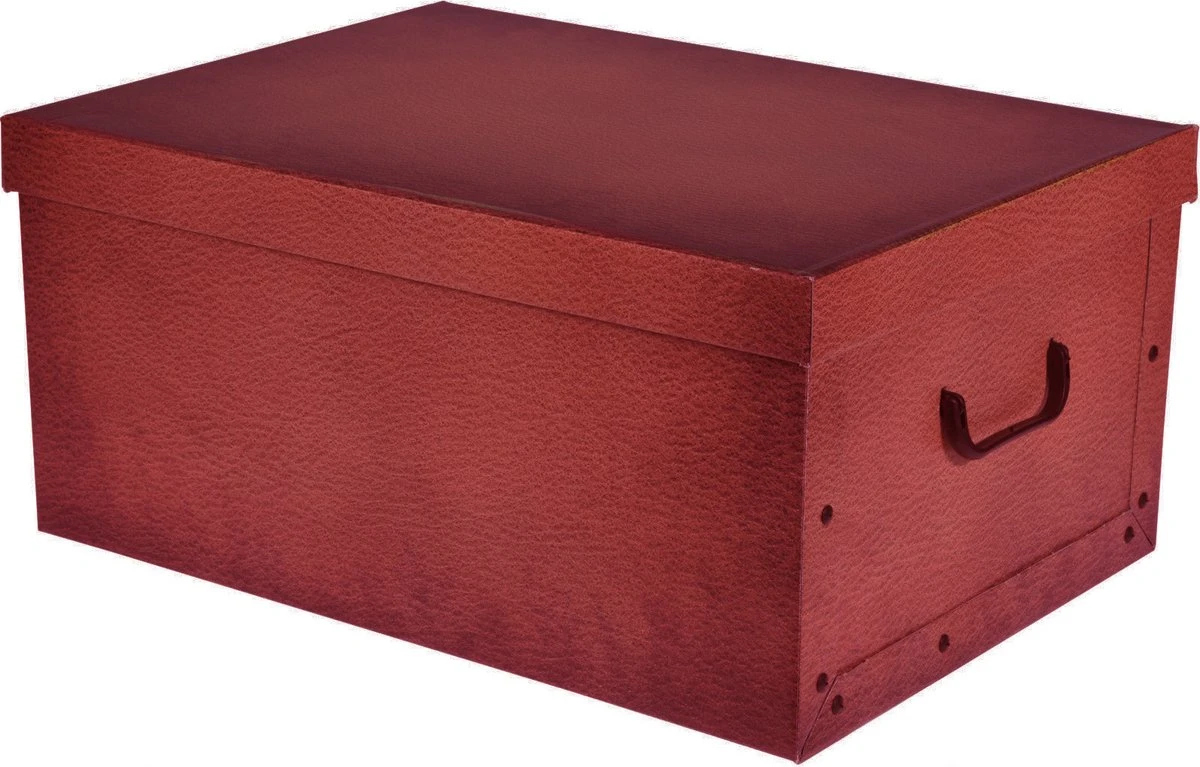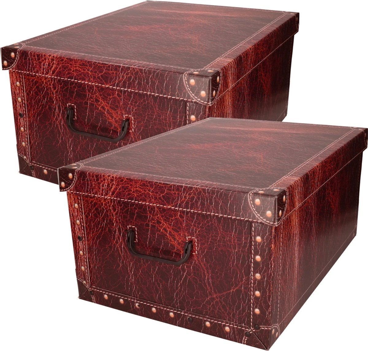 Pakket van 2x stuks opbergbox/opbergdoos van stevig karton in de kleur roodbruin leer motief in formaat 51 x 37 x 24 cm met deksel en handgrepen, inhoud: 45 liter. Opslagboxen/opbergers.