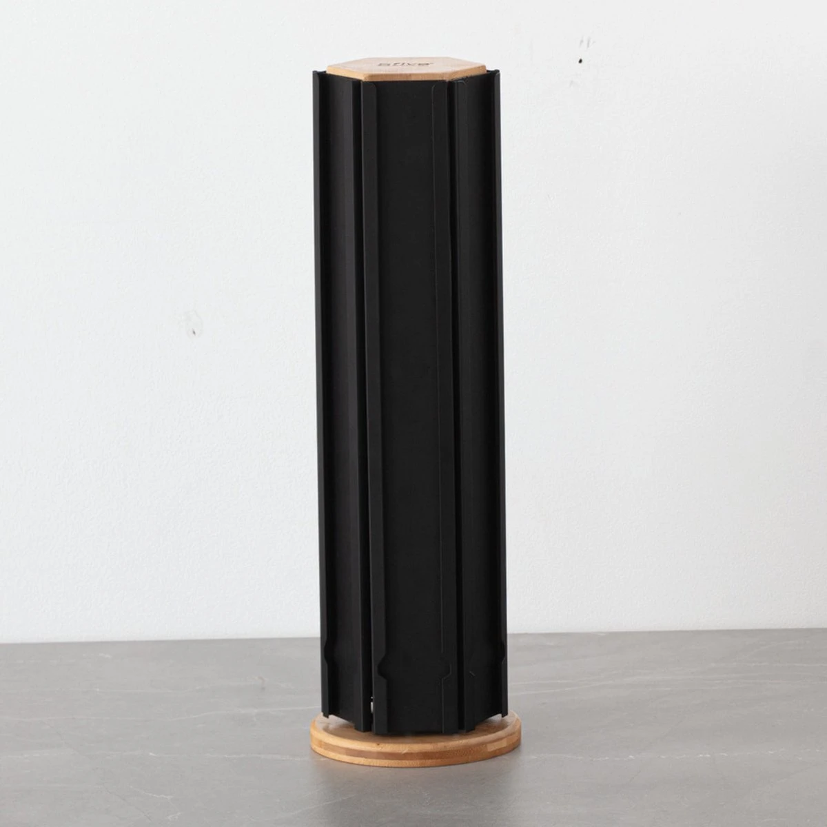 Deze Nespresso cuphouder is gemaakt van metaal en bamboe en heeft een zwarte kleur met houten details. De zes rijen hebben allemaal plek voor 10 cups, hierdoor kun je 6 soorten koffie sorteren. De organizer is 11,5 cm breed, 11,5 cm diep en 35 cm hoog