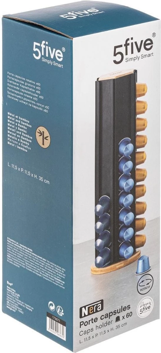 Drink jij ook graag koffie van Nespresso? Dan is deze opberger voor cups ideaal voor jouw keuken. Berg je 6 favoriete soorten gemakkelijk op en organiseer ze in deze houder. Per rij is er plek voor 10 cups. De Nespresso cuphouder is draaibaar en zo pak je altijd nog makkelijker jouw favoriete cup. Het eenvoudige, stijlvolle design van deze opberger van Five® past in iedere keuken.