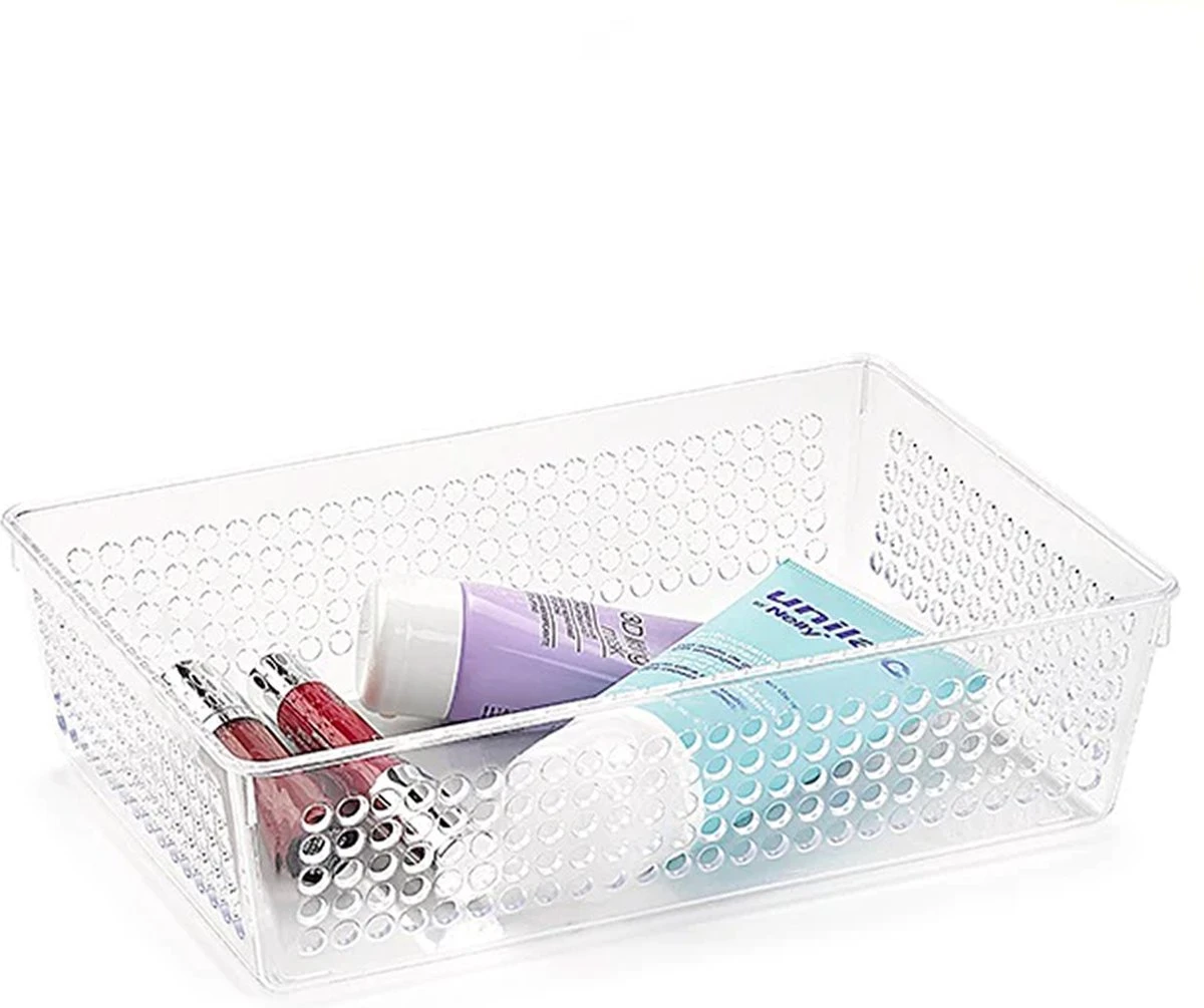 Forte Plastics opbergmand. Handig bakje om kleine spulletjes in de badkamer te bewaren of op uw bureau mee te ordenen. Materiaal: plastic. Afmetingen: ongeveer 23,5 x 15,5 x 6,5 cm. Organisers/opbergmandjes voor badkamer of kantoor.