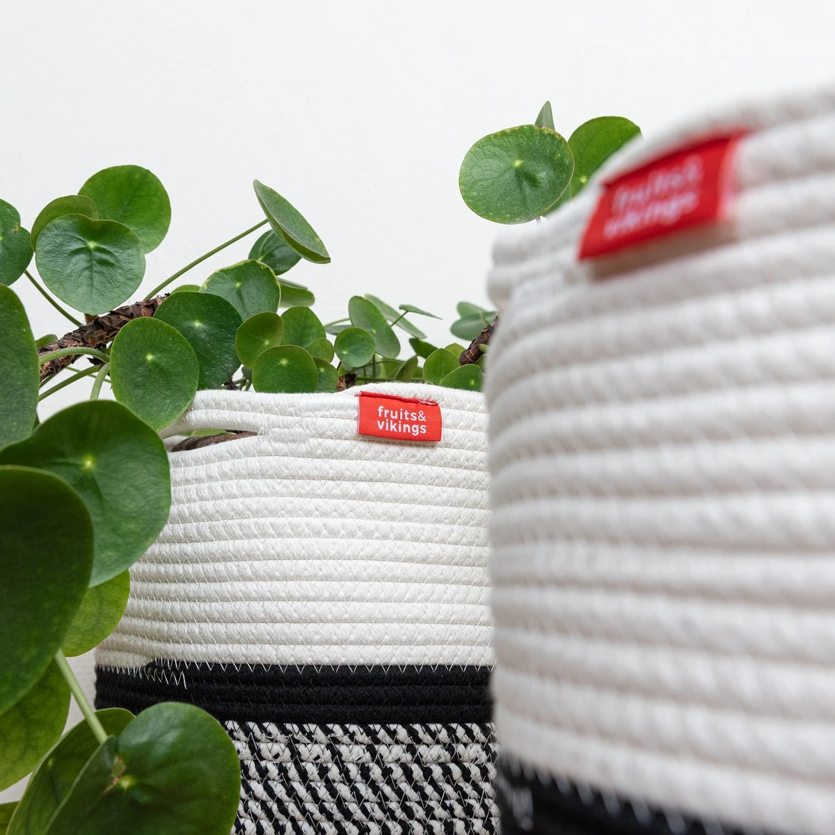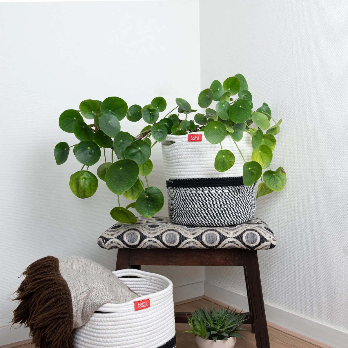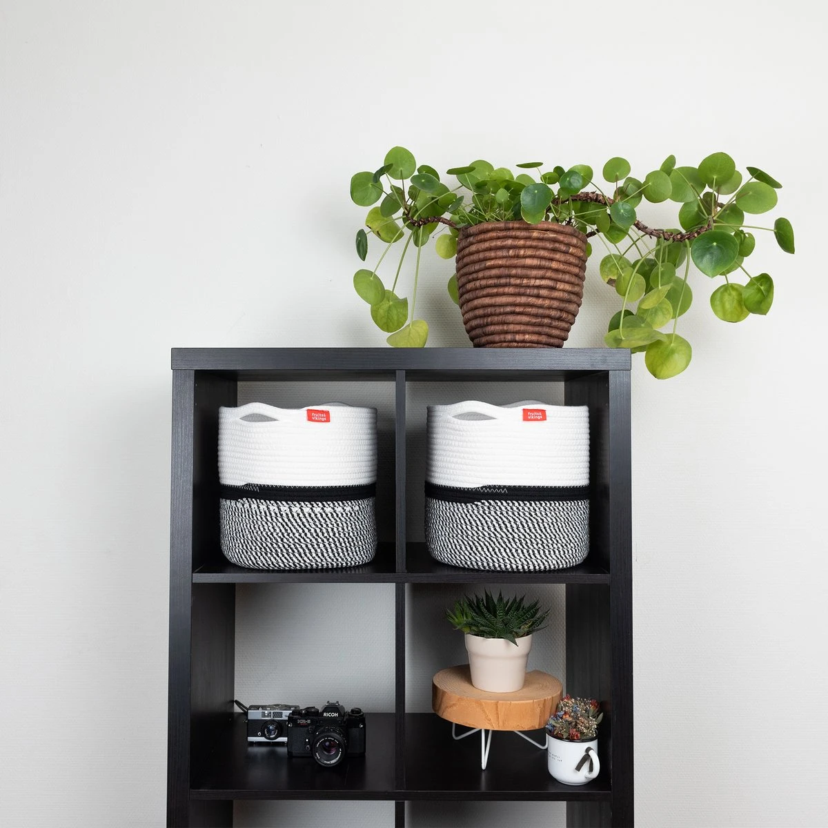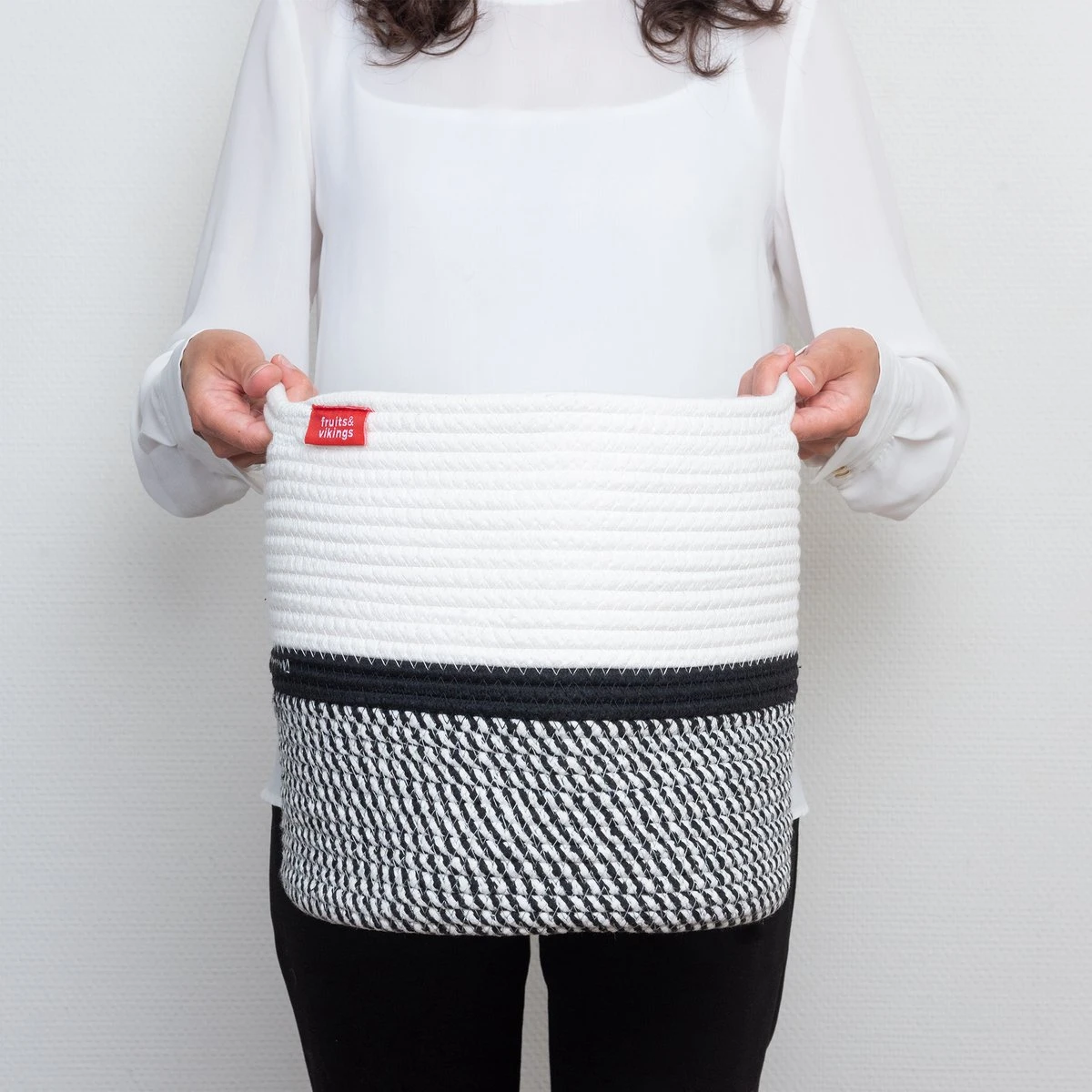 Een combinatie van mooi gevlochten katoen en een stijlvolle zwart-wit print maakt onze opbergmanden extra uniek. Plaats de mand simpelweg in een mooie hoek en geef je ruimte een nieuwe look.