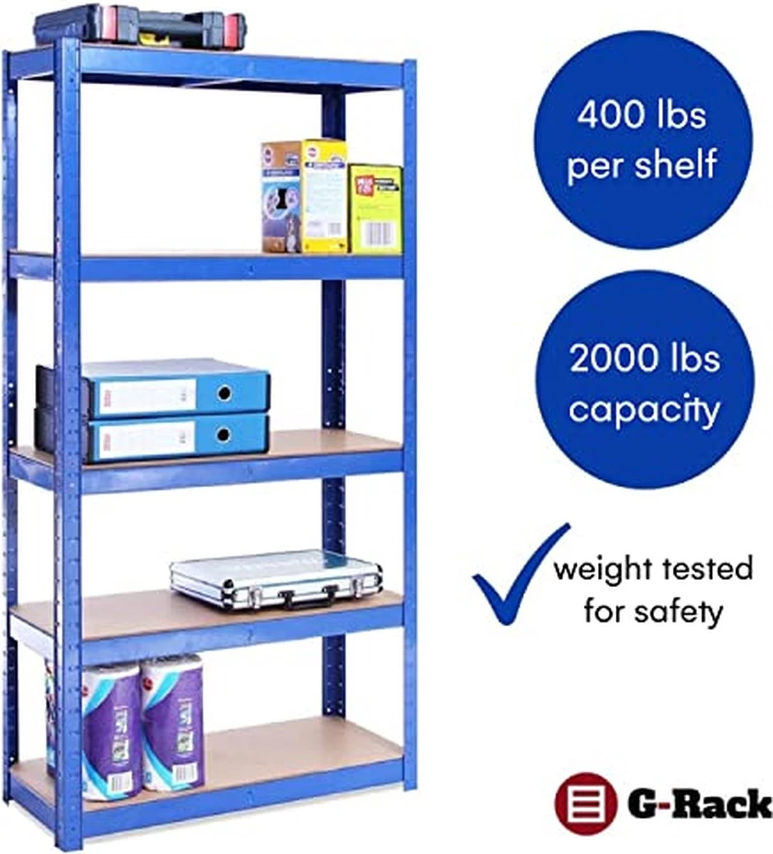 G-Rack Rekken Voor Zwaar Gebruik, 1 Blauwe Opslagplank 5 Vakken – Voor Kelder, Werkplaats, Berging, Garage – Metaal I 180 X 120 X 45 Cm I 175 Kg Belasting Per Plank (totaal 875 Kg) I 5 Jaar Garantie