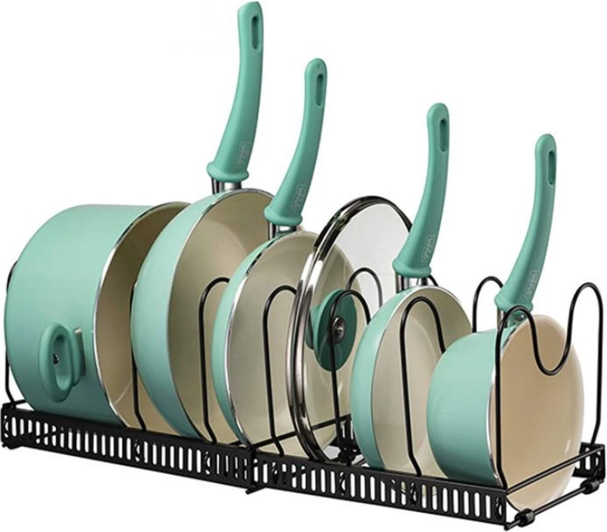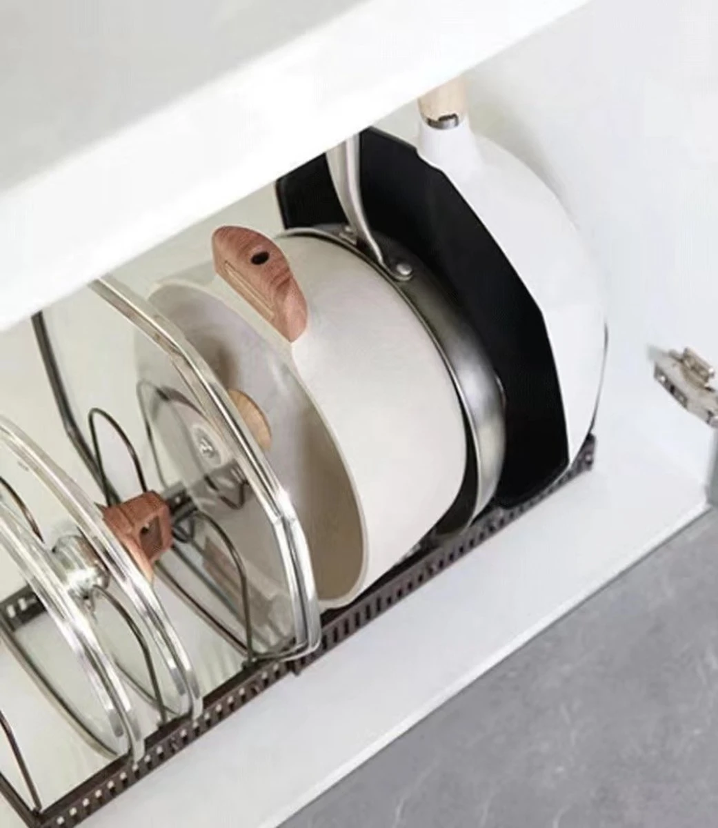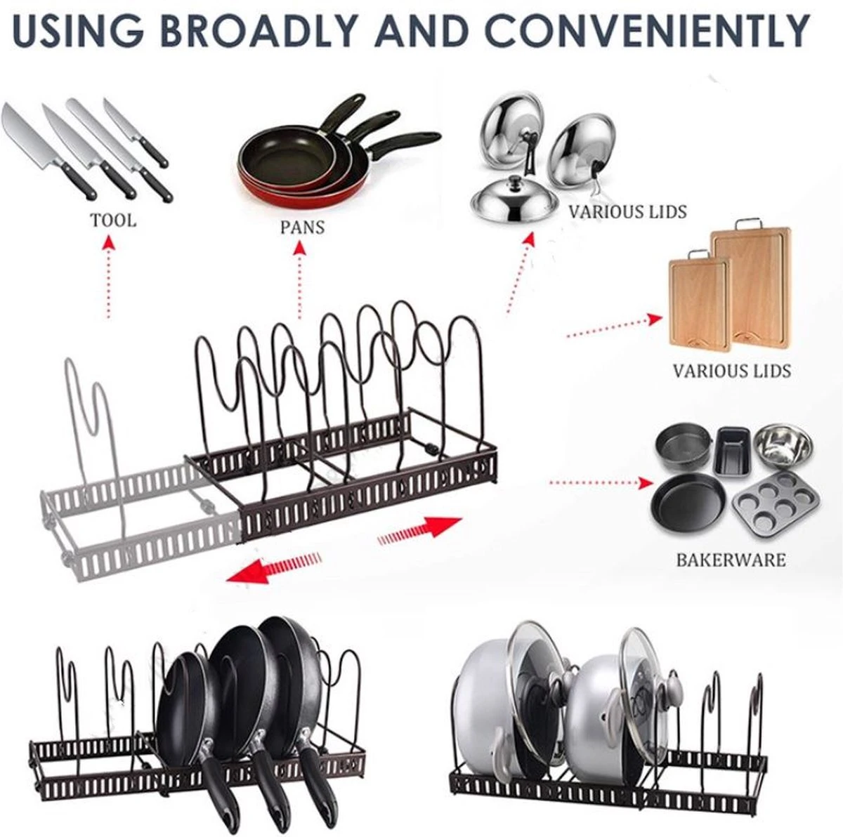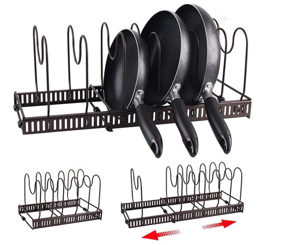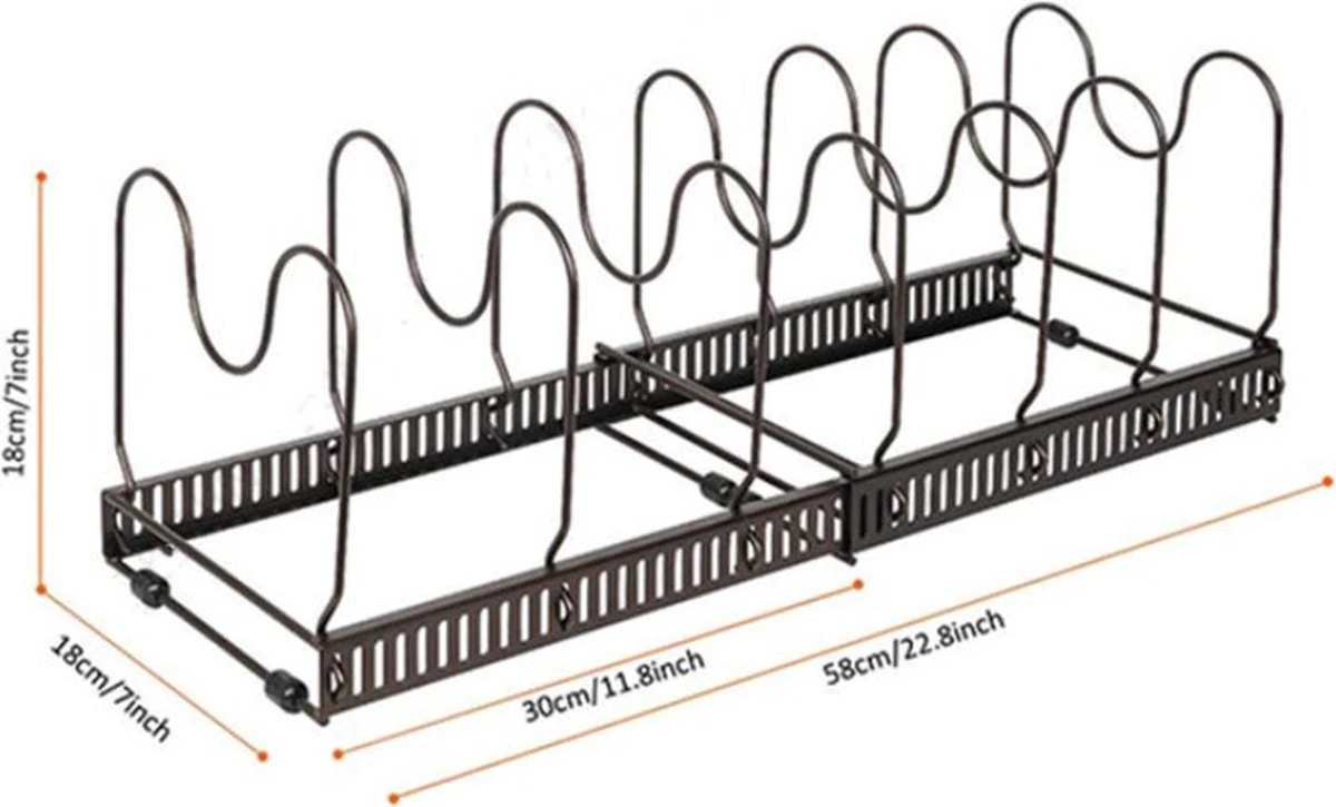 Dankzij het ingebouwde uitbreidingsmechanisme kan deze innovatieve organizer worden verplaatst in geleidelijke hellingen tussen 30cm en 58 cm lang, waardoor hij zeer bruikbaar is in zelfs de meest krappe keukenruimtes.