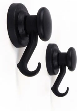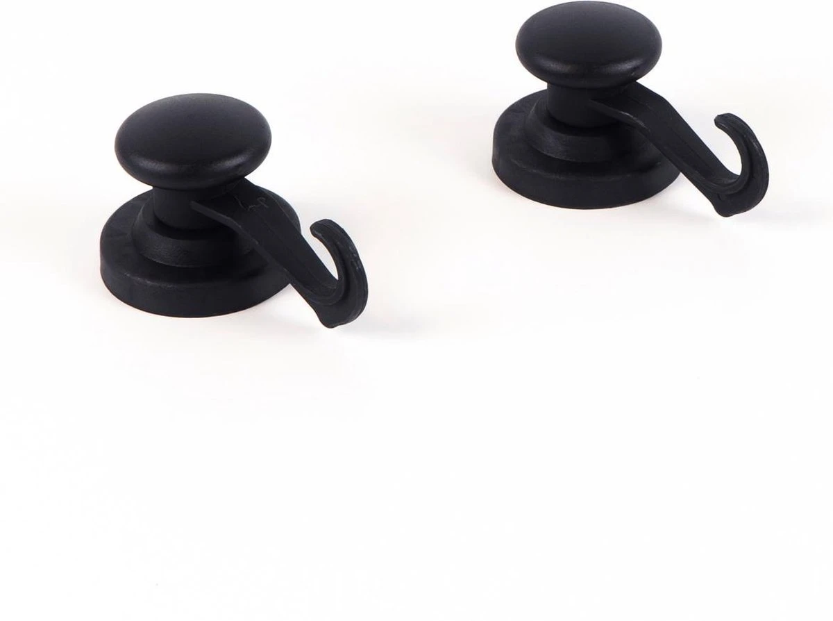PRODUCT SPECIFICATIES: Bevat 2 magnetische haken in de kleur zwart. De achterkant is gemaakt van rubber, dus de haak heeft anti-slip en krast niet! Diameter 5,3cm. Haak lengte: 6,5cm. Hoogte: 4,3cm.