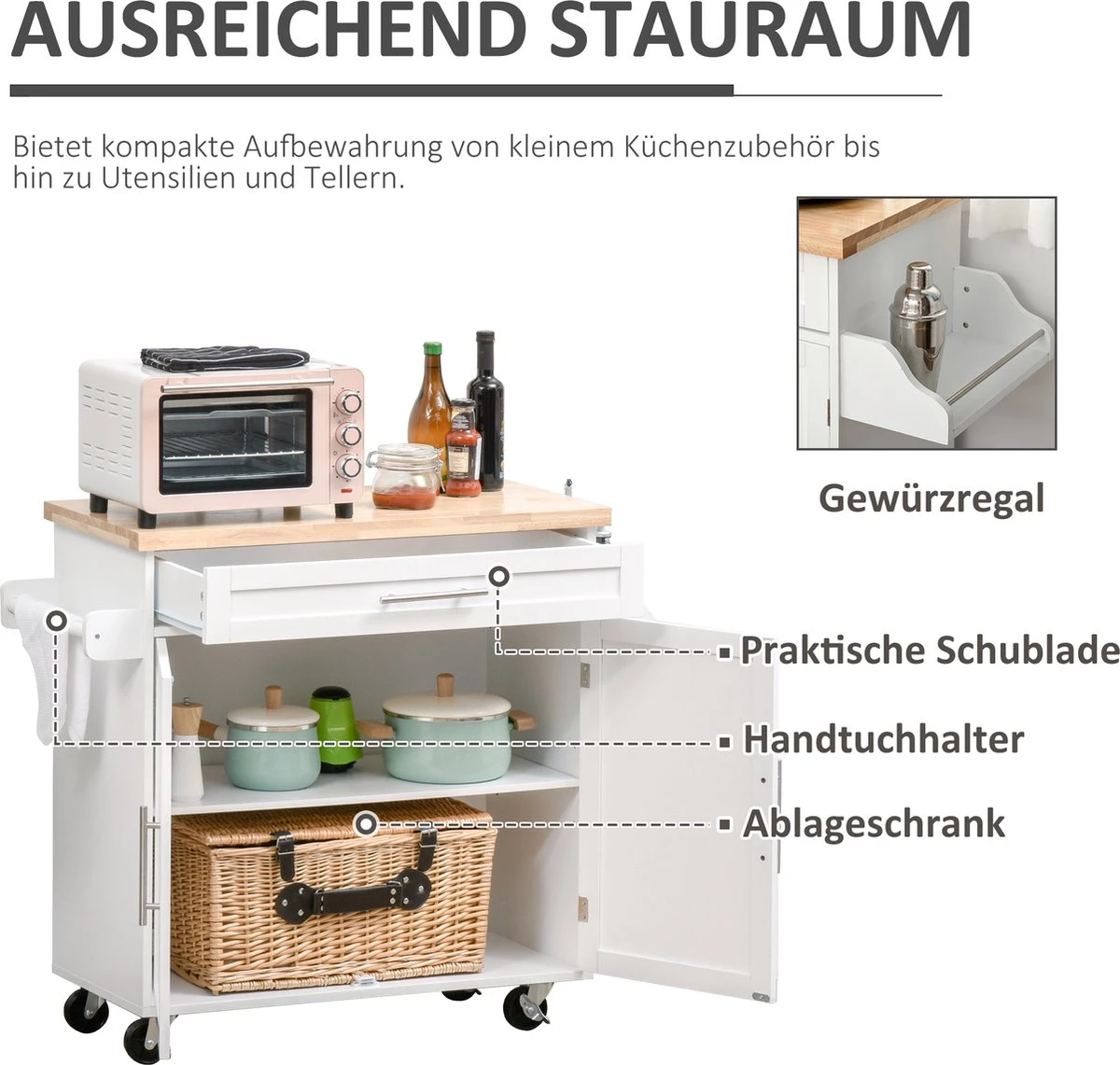 HOMCOM Keukentrolley Rolbare Serveerwagen Keuken Trolley Voor Keuken Woonkamer Eetkamer 801-178