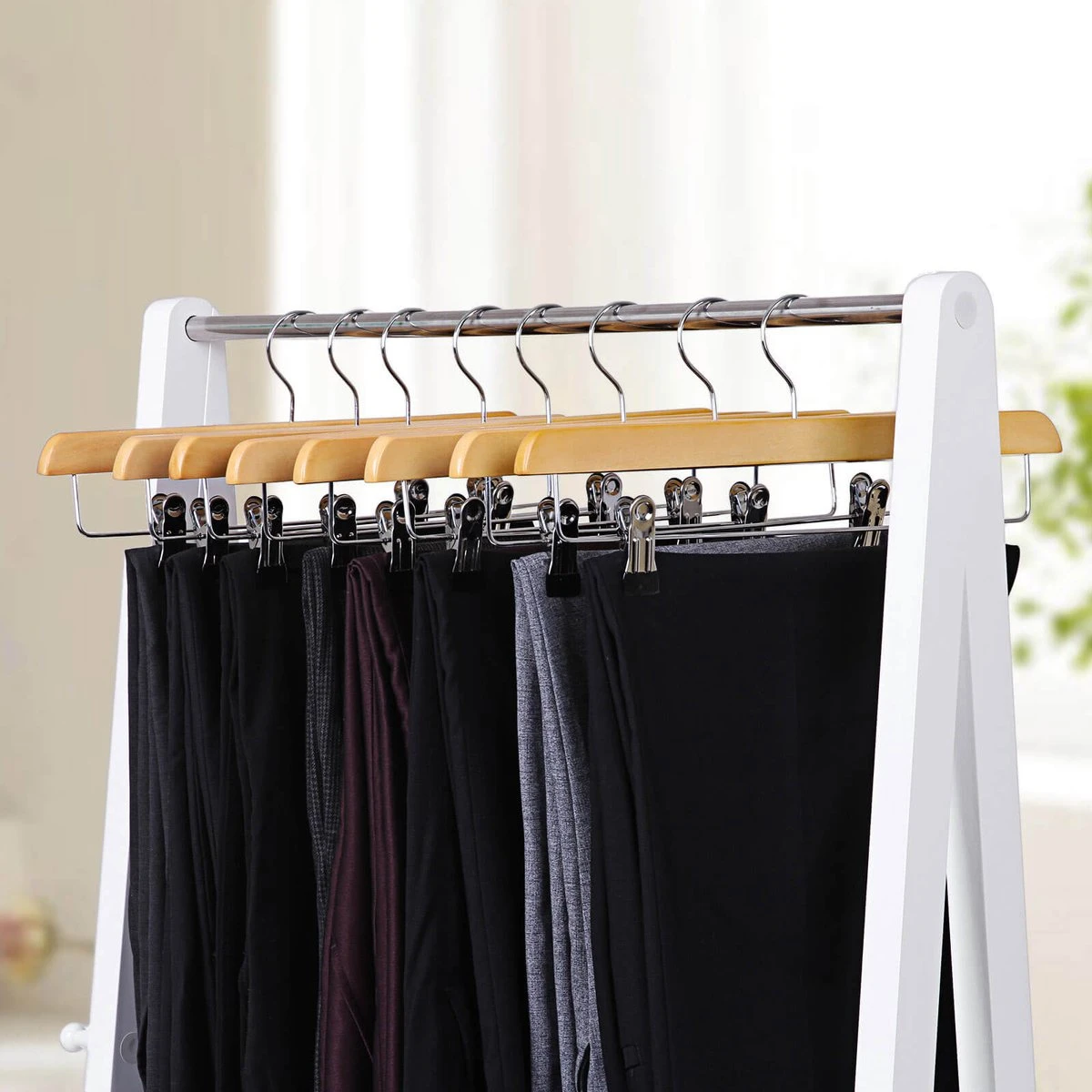 Maak stijl niet voor kwaliteit: goede materialen spreken voor zich; gemaakt van handgepolijst premium hout en hoogwaardig metaal. deze broekhangers hebben een lange levensduur. Aan deze hangers kun je je broek. jeans. rokken of schoudervrije kleding ophangen.