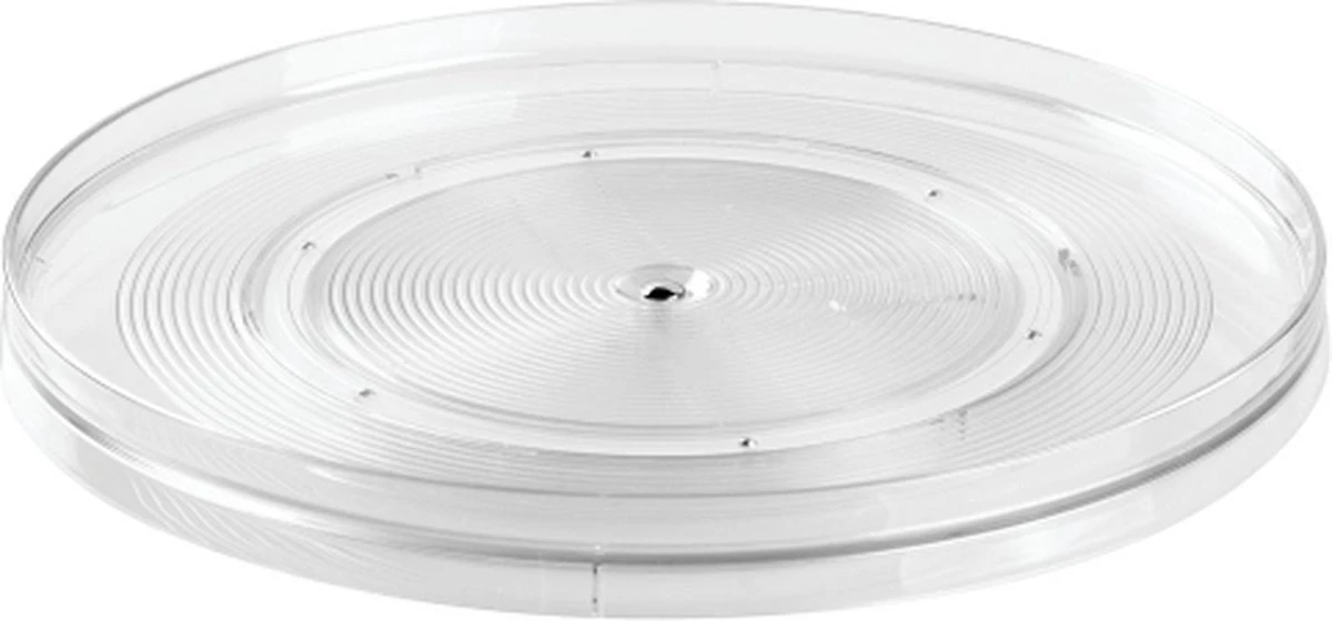 Het draaiplateau draagt bij aan een slimme keukenkast indeling. Je kunt er diverse kleine en grotere potjes en flesjes op kwijt en dankzij de draaibare functie kun je gemakkelijk bij het potje dat je nodig hebt. De verhoogde rand zorgt er voor dat jouw potjes niet zomaar van het plateau af kunnen vallen.