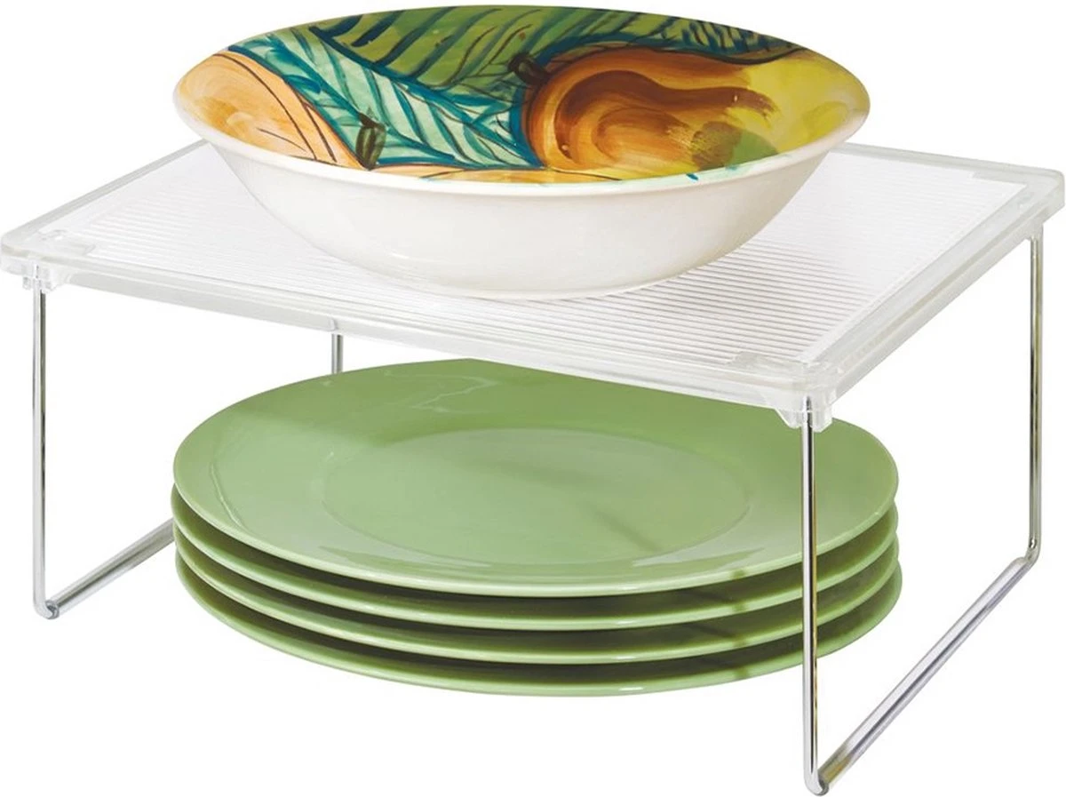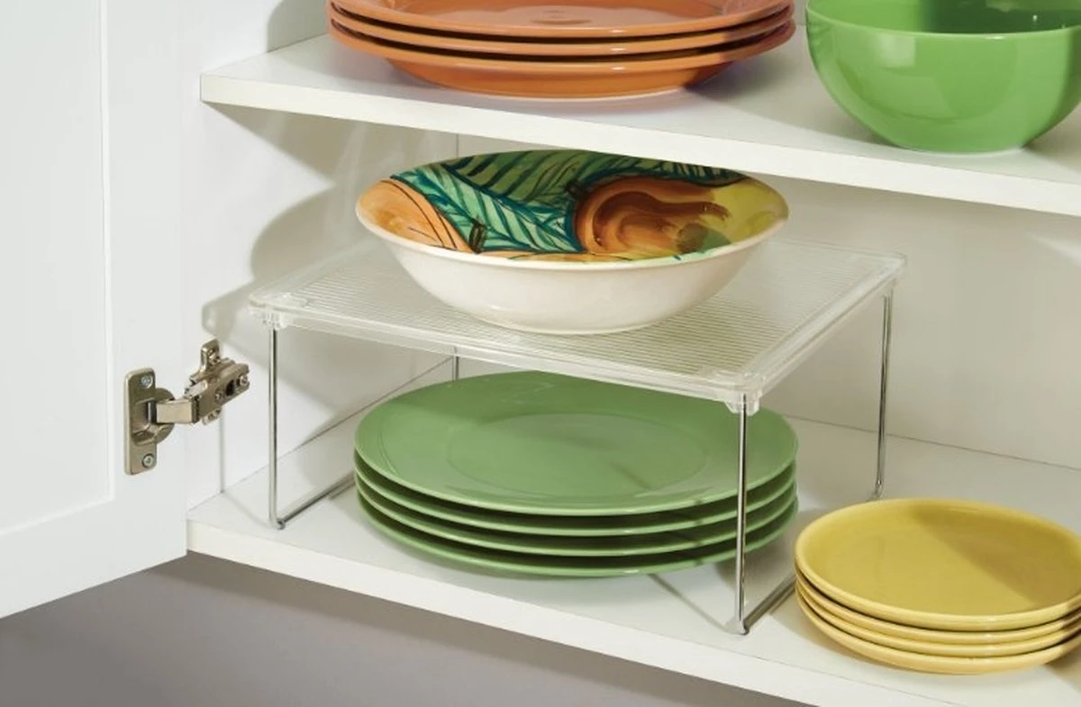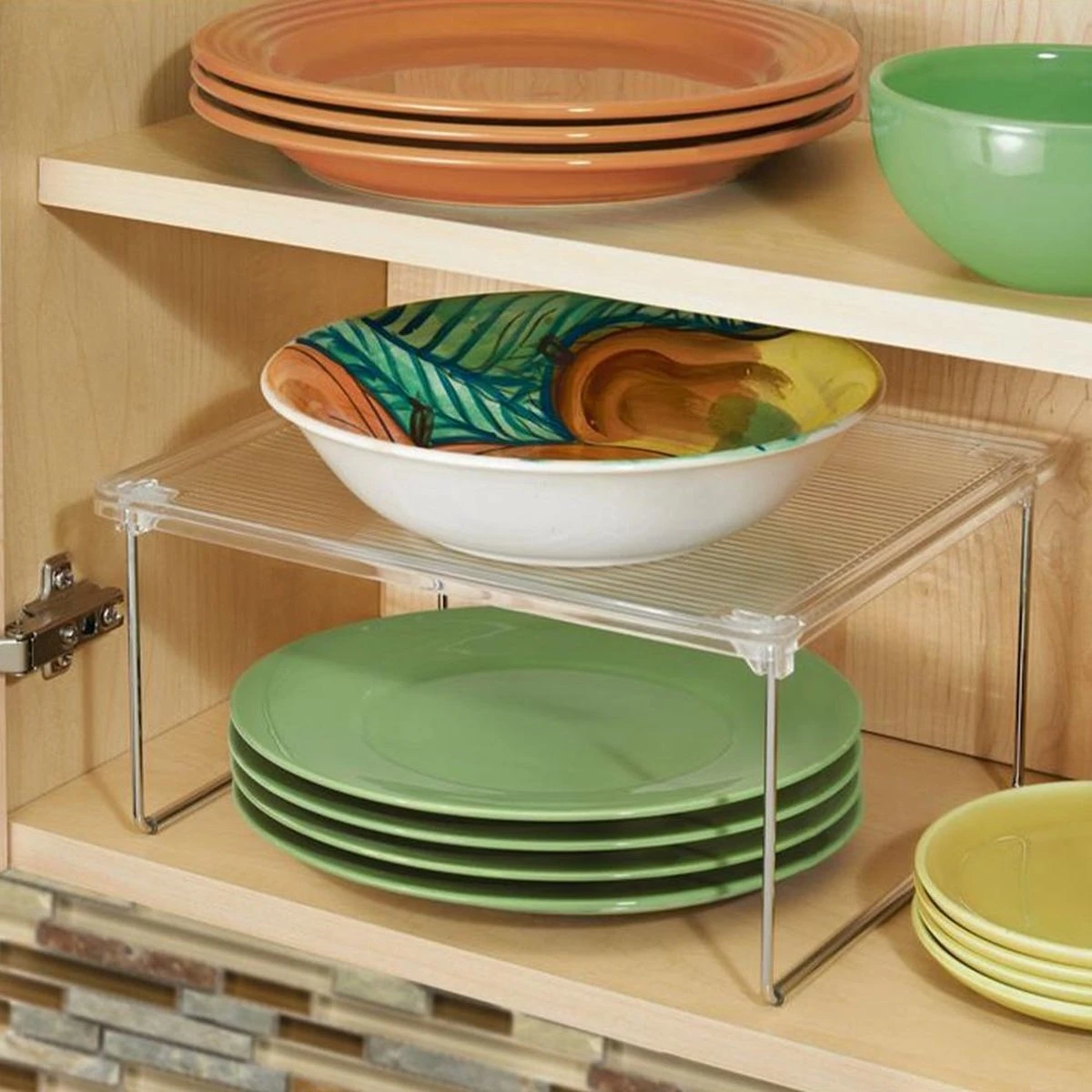 Handig transparant keukenkast rekje om borden en schalen boven elkaar te stapelen. Zorgt voor een betere keukenkast indeling.