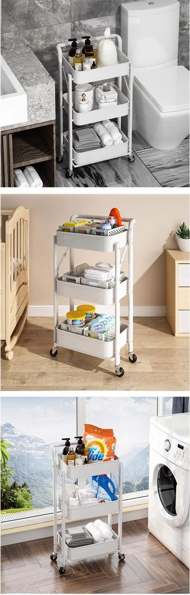 De multifunctionele opbergwagen is handig voor opslag en transport als een badkamertrolley, barwagen, kunstwagen, knutselwagen, organisatierek, serveerwagen, opbergplanken, gereedschapswagen en ook geschikt voor je slaapkamer, babykamer, badkamer, douch, keuken, garage, kantoor, wat je maar wilt. Trolley zorgt voor een schone en comfortabele leefruimte!