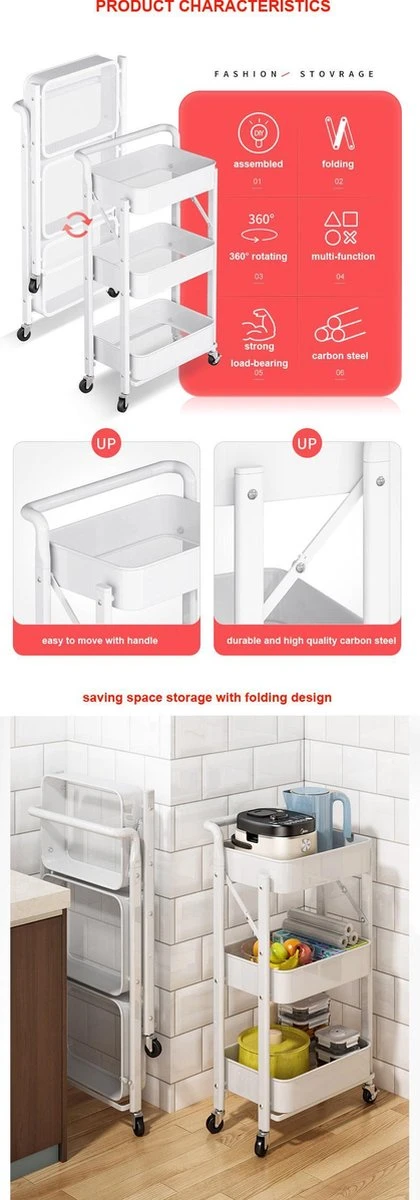 Je hebt je beste gedaan om je woning mooi in te richten, maar er ontbreekt toch iets! Dat is deze moderne keukentrolley. We hebben ons best gedaan om de kwaliteit, functionaliteit en het design te combineren. Dat is ons goed gelukt! Het keukentrolley heeft een moderne uitstraling, is solide en betrouwbaar, heeft een groot draagvermogen en heeft een zeer grote capaciteit waar je veel dingen in kunt plaatsen. Door het slimme ontwerp, neemt het niet veel ruimte in beslag. Door dat de keukentrolley inklapbaar is, kun je deze gemakkelijk opvouwen en verstoppen als je het niet nodig hebt. Deze multifunctioneel keukentrolley op wieltjes is een best koop! Lees verder waarom…