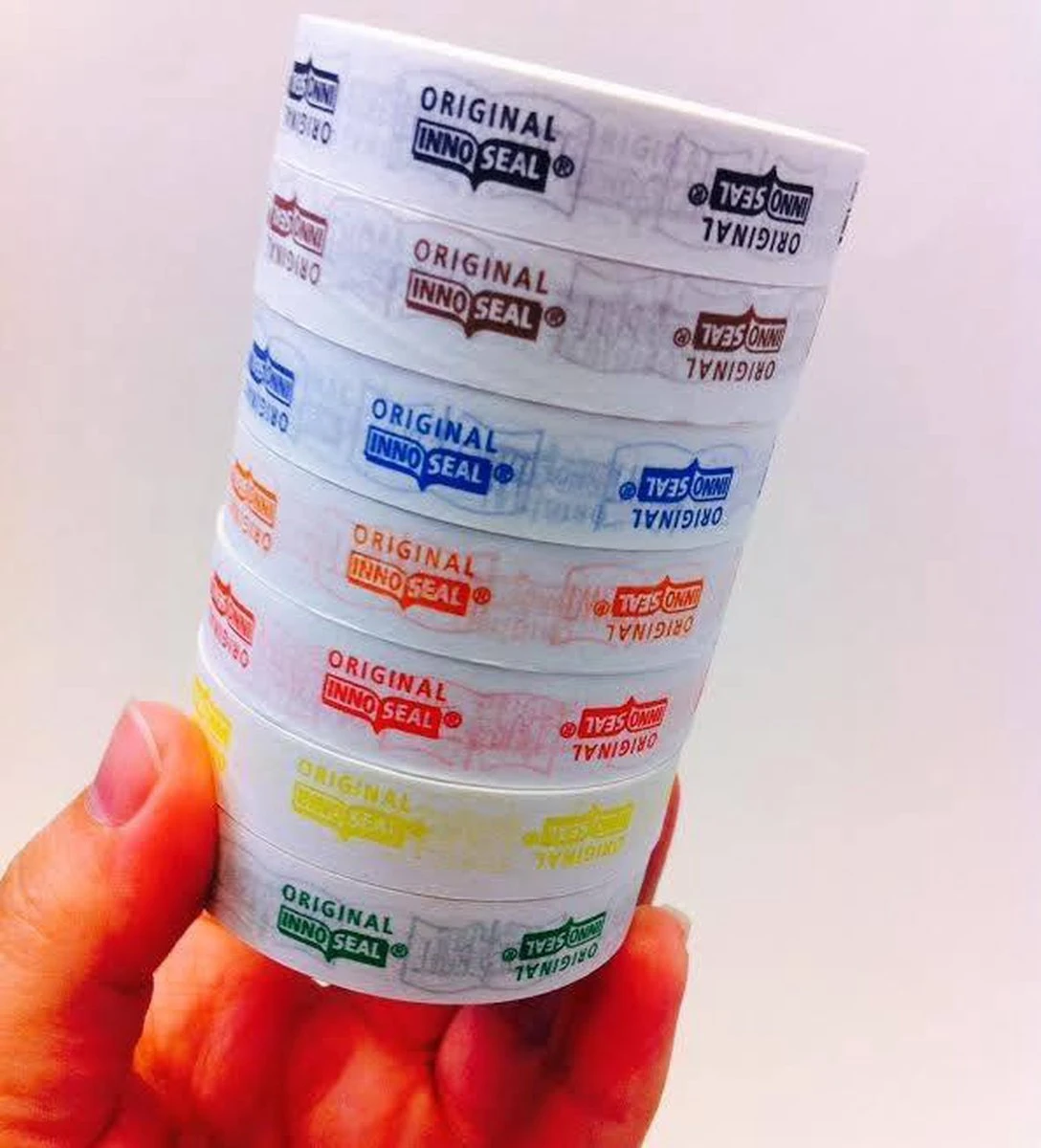 Een heel belangrijk voordeel is dat de InnoSeal werkt met het transparante Polypropyleen tape en niet met het zwaar milieu belastende PVC tape zoals alle andere zakkensluiters gebruiken. (het rood, geel, blauw tape is van pvc).