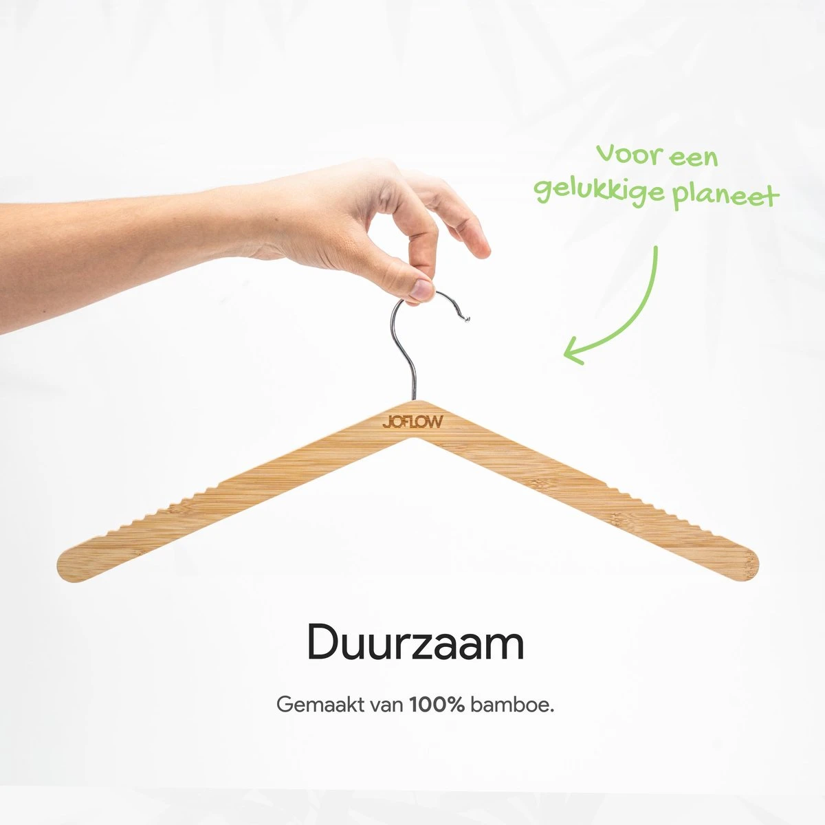 Gemaakt met het Bamboehout dat duurzaam is en niet snel kapotgaat, zo heeft u lang veel plezier van de JoFlow klerenhanger.