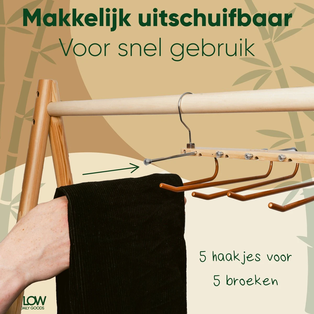Gemaakt met het Bamboehout dat duurzaam is en niet snel kapotgaat, zo heeft u lang veel plezier van de JoFlow broekenhanger. - Uitstekend ontwerp: