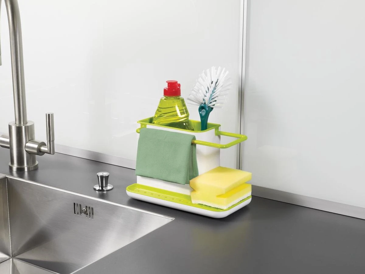 De Caddy is een handige hulp op je aanrecht of in de gootsteen, voor het opbergen van je afwasborstel, afwasmiddel en bijvoorbeeld sponsje. De organiser beschikt over een lekbakje zodat je spullen droger en langer hygiënisch blijven. Het schoonhouden van de Caddy is een fluitje van een cent, omdat je hem uit elkaar kan halen en in de vaatwasser kan doen.