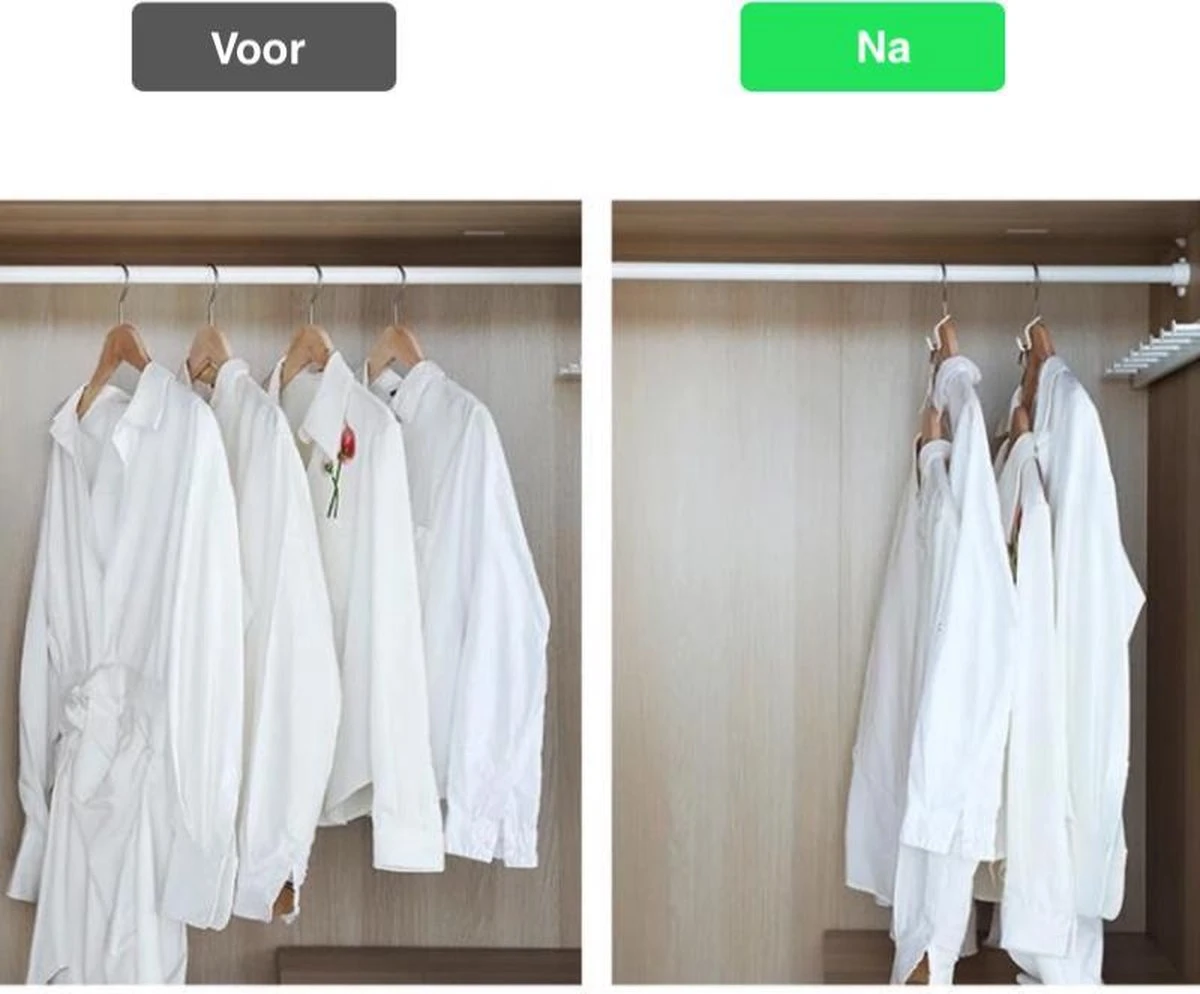 Eén van de grootste redenen om deze hangers te kopen is het besparen van ruimte in de kledingkast! Door deze clips toe te voegen kunt u veel extra kleding kwijt in de kast zonder dat het u extra ruimte kost.
