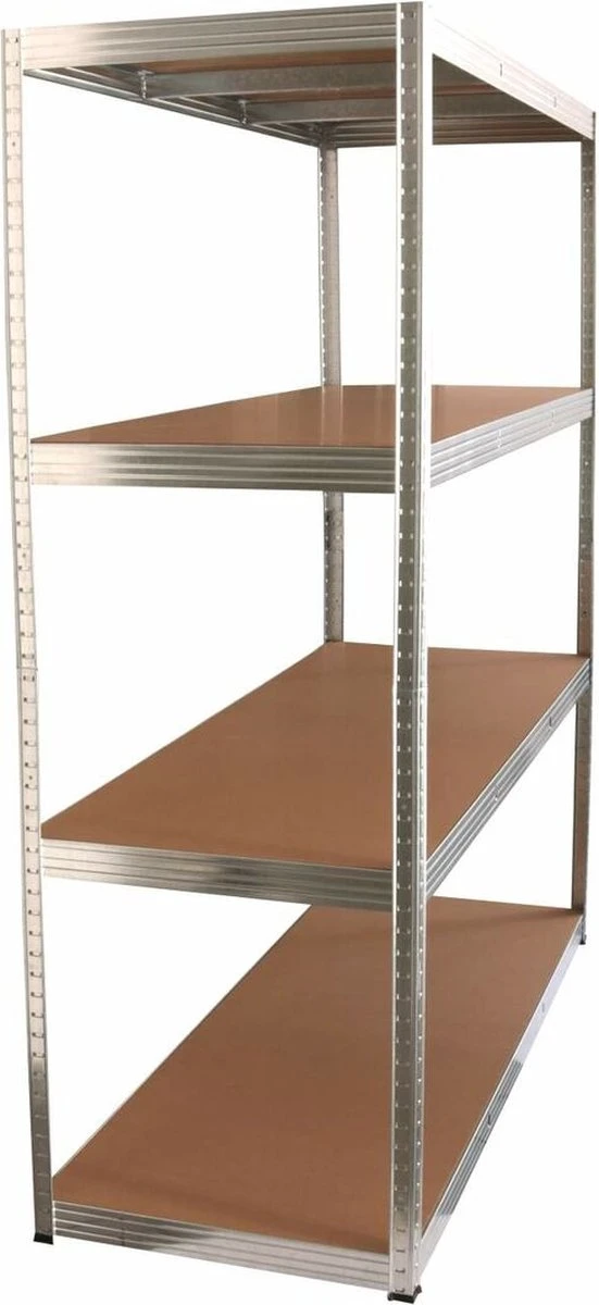 De zware insteekstelling is eenvoudig te monteren en kan in verschillende varianten worden opgesteld. Het gegalvaniseerde frame biedt 4 legborden van MDF met elk een draagvermogen van 250 kg en is ideaal voor de opslag van zware producten in magazijnen, werkplaatsen, enz. Bestaat uit 4 planken, 8 lange en korte langsliggers, 8 x dwarsliggers, 4 buitenranden, 4 verbindingsstukken, 4 kunststof voeten en kartonnen doos met montagehandleiding.