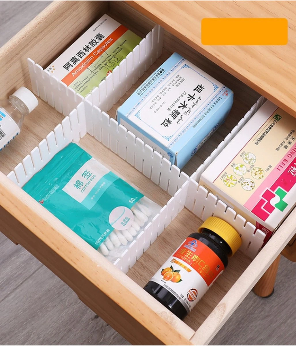 - STEVIGE KWALITEIT: Onze producten bevatten alleen goede en stevige kwaliteit, zodat de klant optimaal kan genieten van het product. De lade organizer is gemaakt van kunststof. De lade organizer kan je ook op de juiste maat bij knippen, zodat deze op de juiste plaats past.