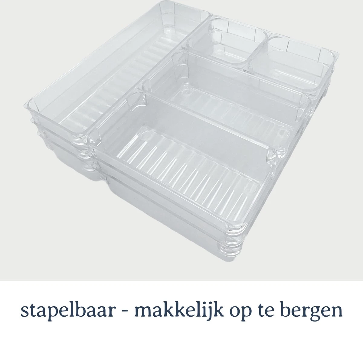 Onze containers kunnen voor veel verschillende doeleinden worden gebruikt. Ze zijn perfect voor keuken, kantoor, laden, garage, werkplaats, school en hobby benodigdheden, make-up, nagellak, of lippenstift organizer, en nog veel meer. Deze set is perfect om te gebruiken als ladeverdeler om de ruimte te maximaliseren en een duidelijk overzicht van alle items te hebben.