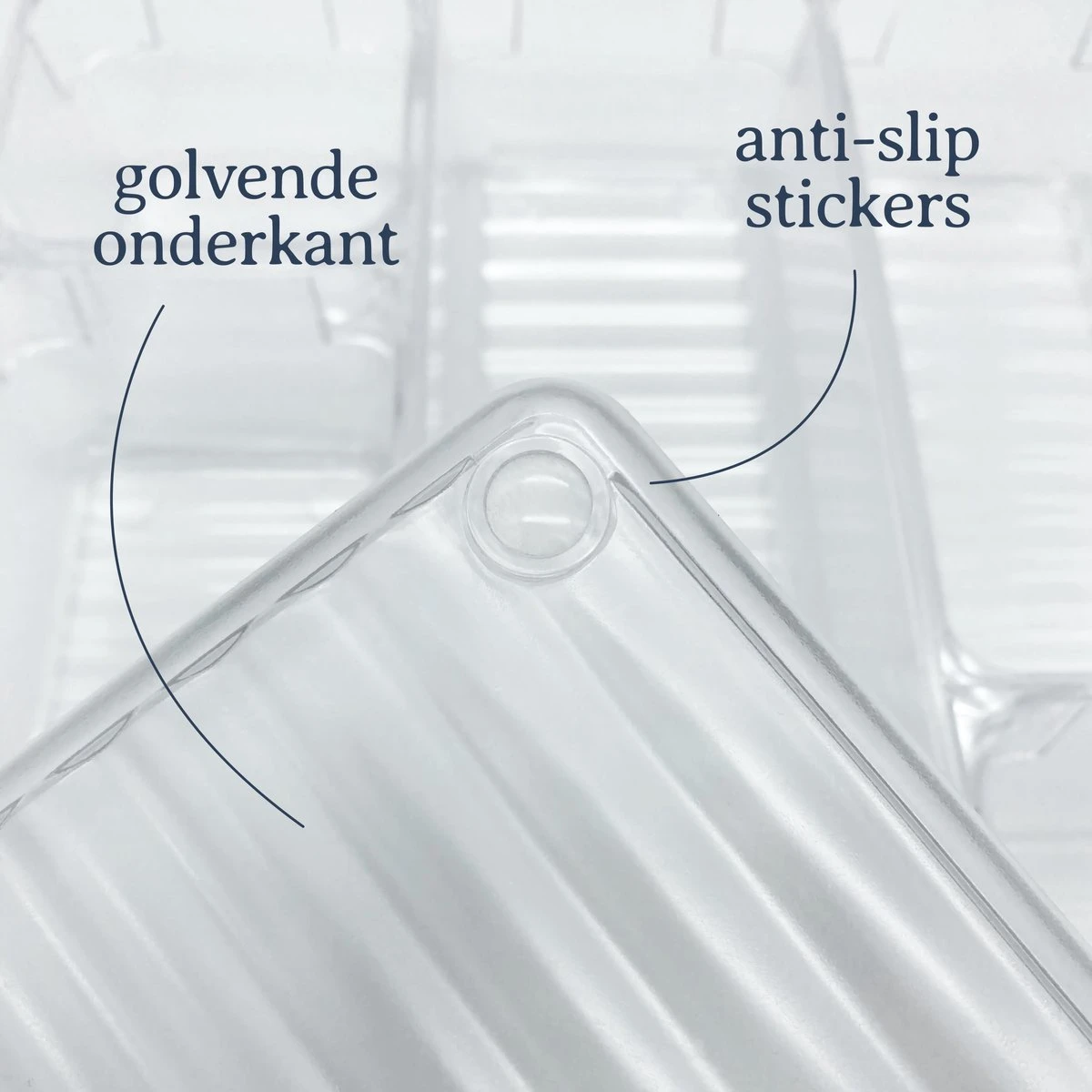 Ons ontwerp heeft golven aan de onderkant, zodat de items binnenin, zoals kantoor- of knutselbenodigdheden (pennen, paperclips, knopen, naalden en meer) niet wegglijden of verschuiven. Het maakt het ook veel gemakkelijker om voorwerpen uit de bakjes te halen.