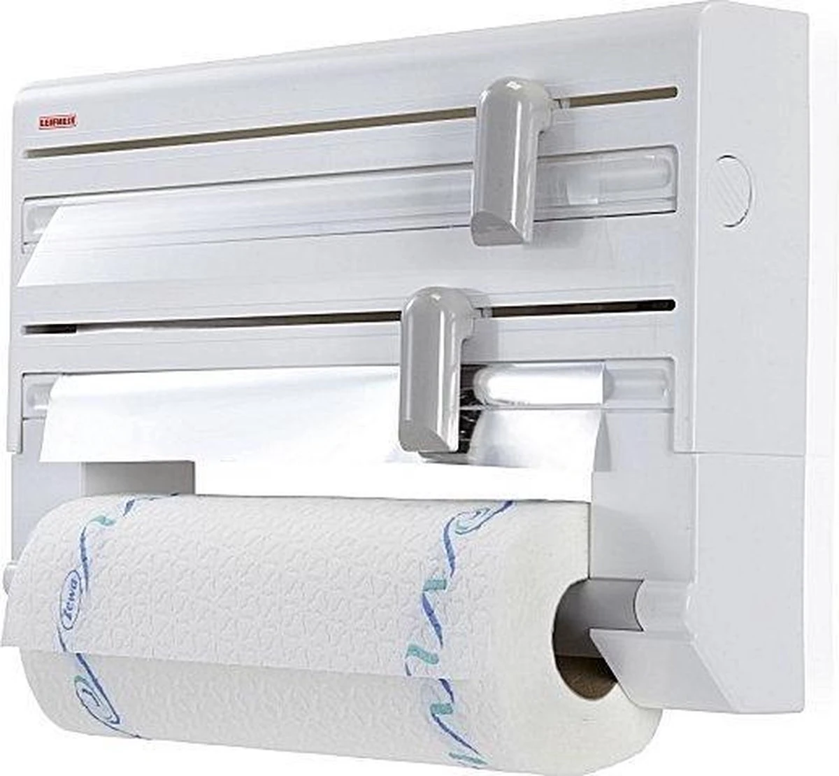 Uittrekken, snijden, klaar – rollenhouder Parat snijdt met zijn vlijmscherpe messen aluminiumfolie en vershoudfolie hygiënisch en exact af. Geen lang zoeken in keukenlades, geen lelijk afgescheurde randen en geen gepruts meer met het begin dat niet te vinden is. De folie-einden steken na iedere afsnijden ver genoeg uit de rolhouder – altijd gebruiksklaar en gemakkelijk vast te pakken. De vlijmscherpe messen zijn veilig achter de ergonomisch gevormde snijschuivers weggewerkt. Rollenhouder Parat biedt plaats aan aluminium- en vershoudfolie. Een derde houder is voor de keukenrol bestemd. De rollenhouder is eenvoudig aan de wand te bevestigen en snel en gemakkelijk vanaf de voorkant te vullen. Behuizing afnemen, rollen erin leggen en rollenhouder Parat is klaar voor gebruik. Geschikt voor alle gangbare afmetingen keukenpapier.