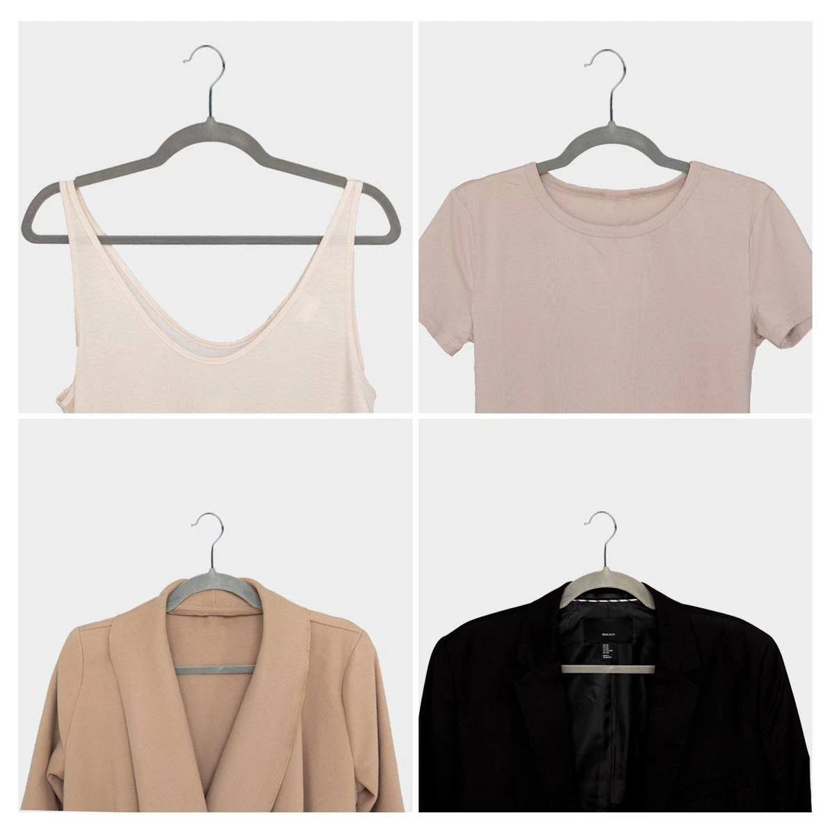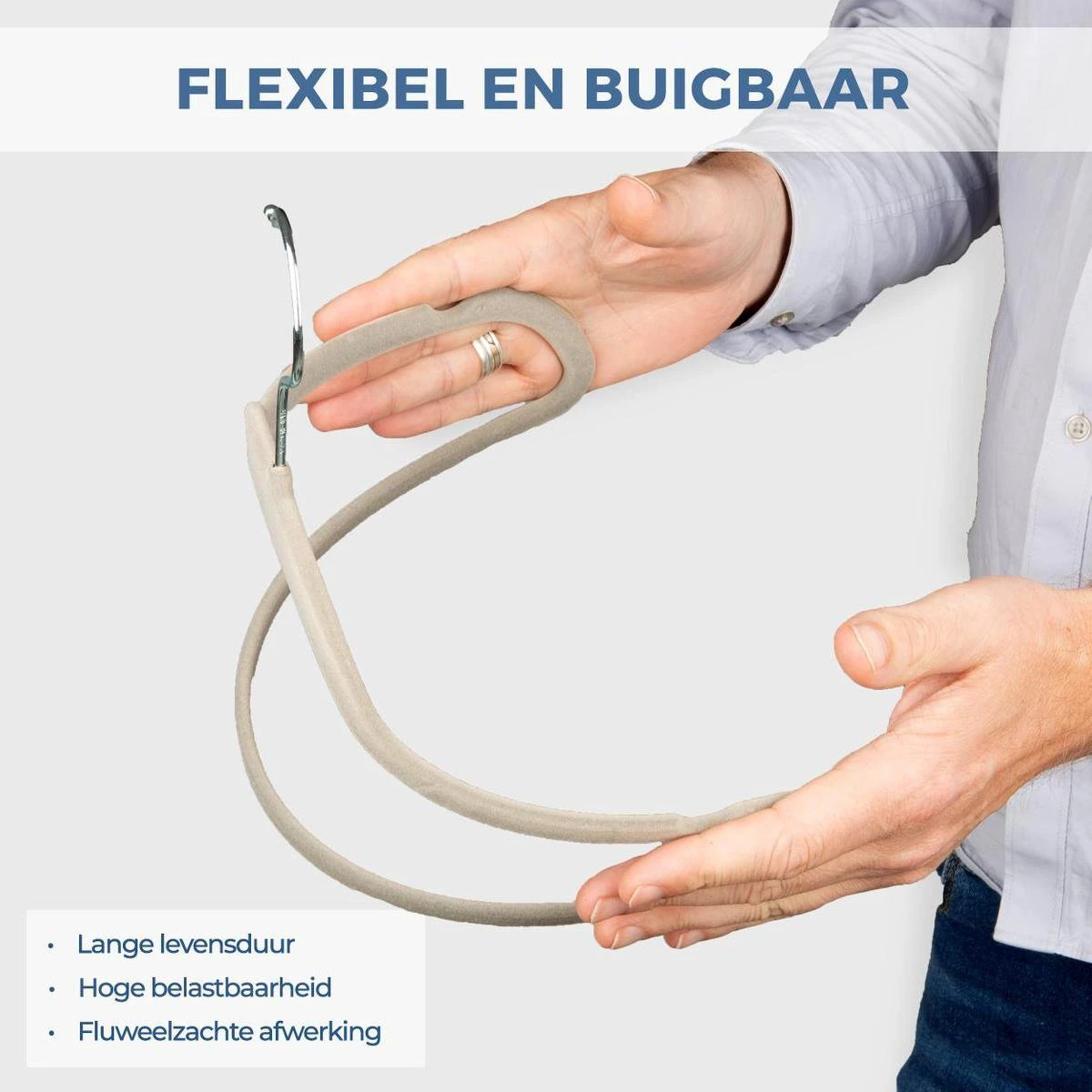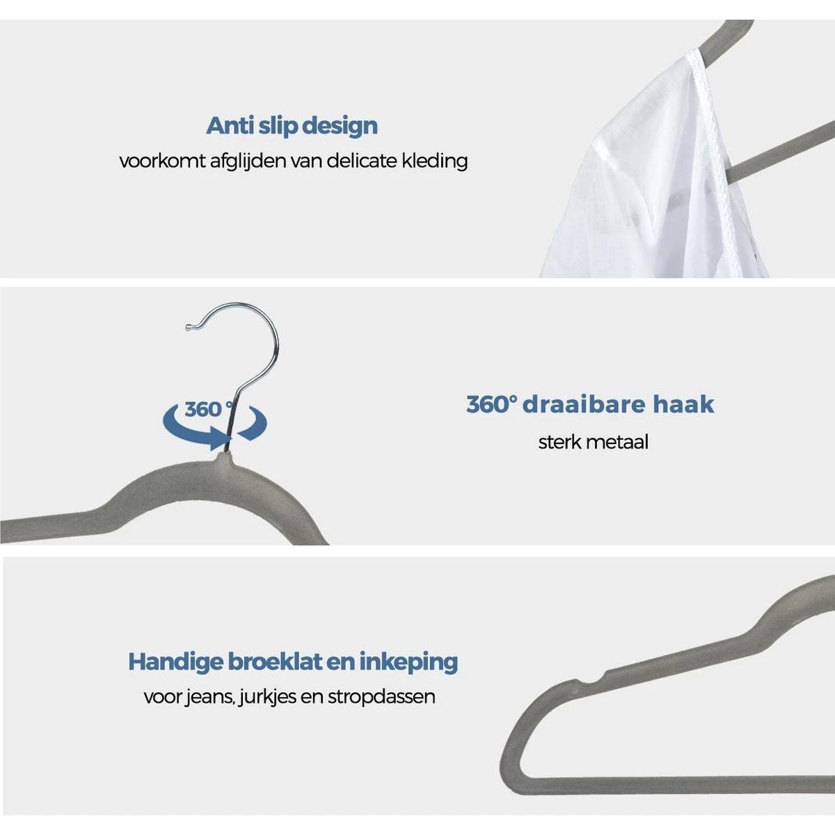 De fluwelen afwerking van de kledinghangers heeft een antislip werking. Zelfs delicate stoffen als zijde en satijn kunnen worden opgehangen zonder dat het van de hanger glijdt. Tevens geeft dit de hanger een luxe en elegante uitstraling. Daarnaast zijn de hangers zeer stevig en belastbaar tot liefst 5kg!