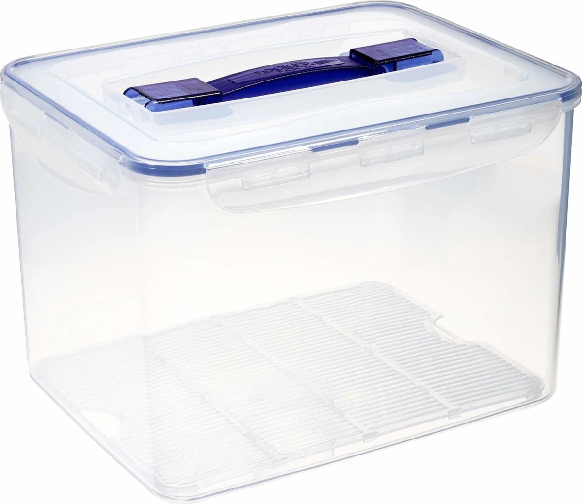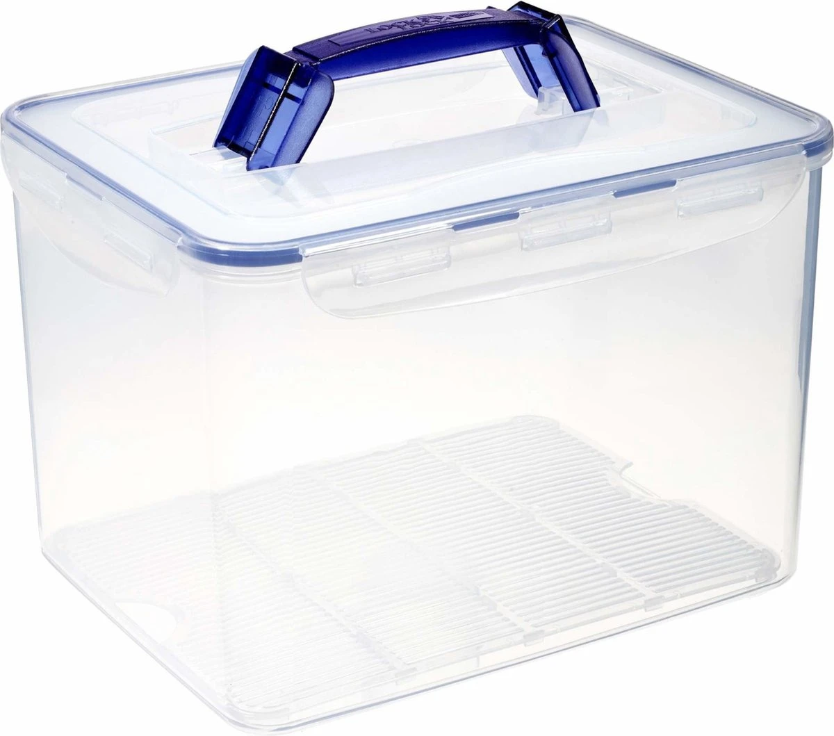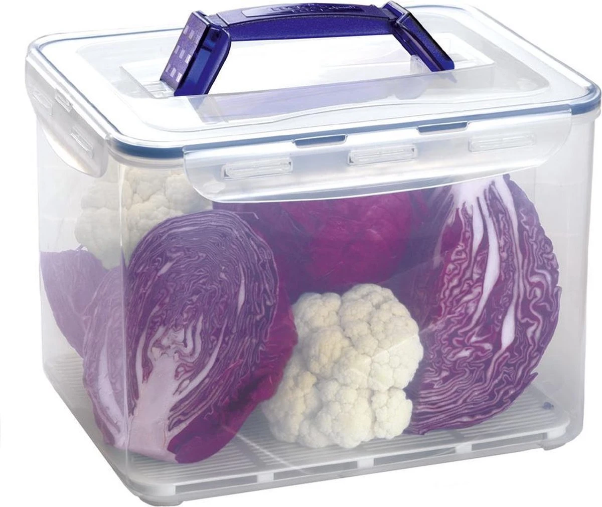 Handige transparante Lock & Lock vershoudbak. Grote opbergbox inclusief (los) vochtrooster en handgreep met een inhoud van 10 liter. Zeer geschikt voor het bewaren van grote hoeveelheden eten (bijv. groente en fruit) of het opbergen van spullen.