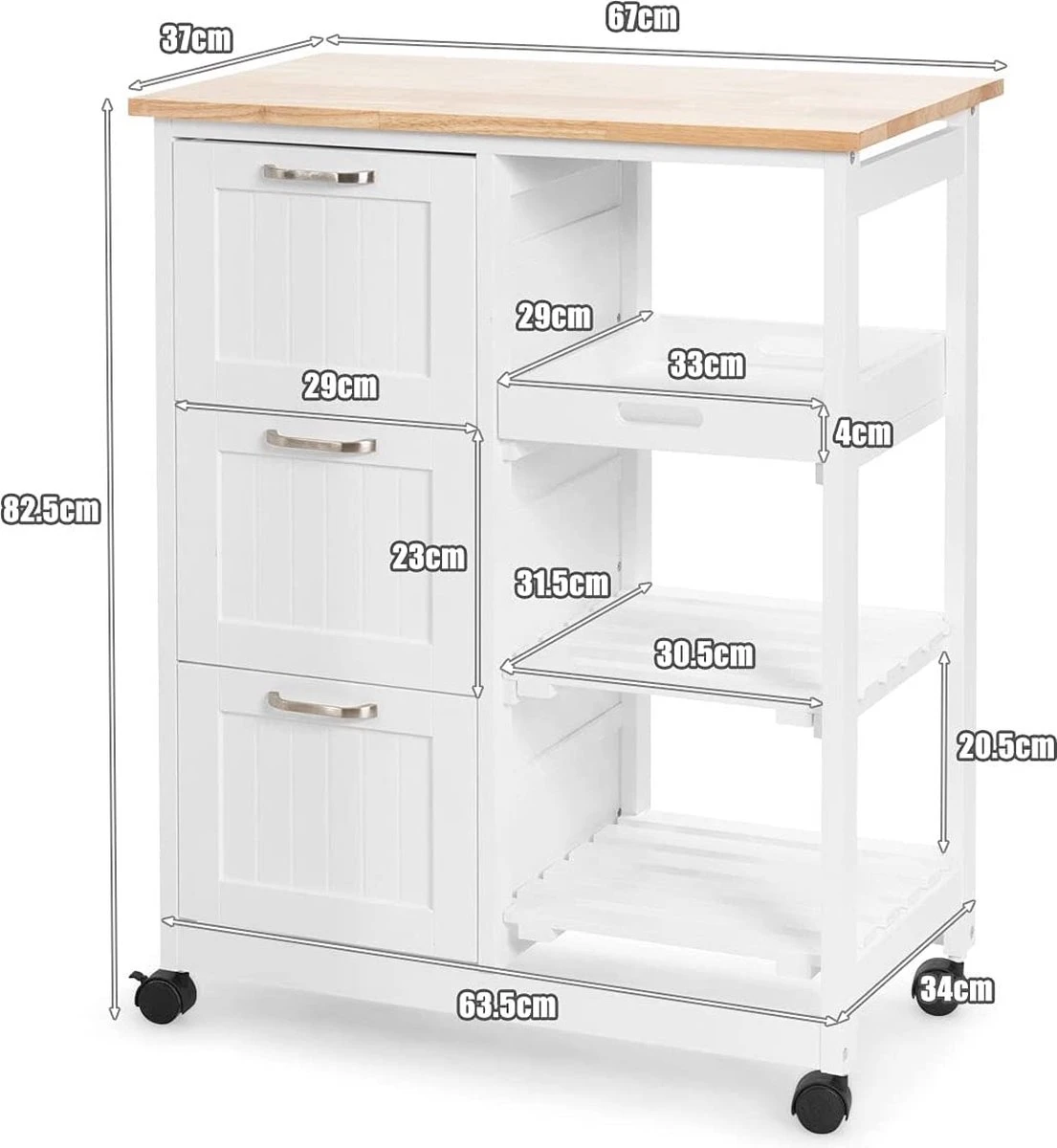 - 【Gemakkelijk te monteren en schoon te maken】Deze keukentrolley wordt geleverd met een duidelijke en korte instructie. U kunt de montage gemakkelijk begrijpen en het kost weinig tijd. Bovendien is het gladde houten oppervlak waterdicht en gemakkelijk schoon te houden met een vochtige doek.